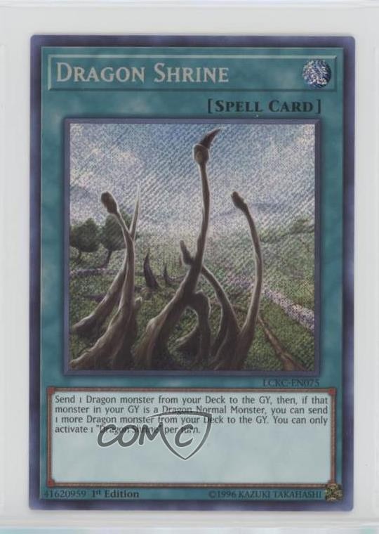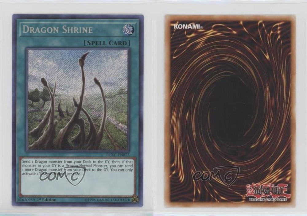 2018 Yu-Gi-Oh! - Legendary Collection Kaiba - [Base] - 1st Edition #LCKC-EN075 Secret Rare - Dragon Shrine COMC Item: 84919425 - YuGiOh Card - Featuring Dragon Shrine Search for more: 2018 Yu-Gi-Oh! - Legendary Collection Kaiba Search for more: 2018 Yu-Gi-Oh! - Legendary Collection Kaiba - [Base] - 1st Edition View all of our Listings Auctions Buy It Now About Us Located in the beautiful Pacific Northwest, COMC (Check Out My Cards) is the world's largest consignment service for trading card singles. More than 10,000 people have used our consignment service to list over 50 million trading cards. Find out how we can help you consign your items on eBay by contacting us through eBay messaging. COMC -- "The Safe & Easy Way to Buy & Sell" Raw Condition for Modern Cards Unless otherwise noted, raw modern cards are listed in Near Mint-Mint condition or better. A NM-MT card appears to be Mint at first glance, but upon closer inspection, may exhibit some of the following: minor print defects (e.g. roller marks, print line, dimple), minor scratches, slight edge wear, and slight corner wear. Centering is clearly visible in the images provided and does not factor into our condition assessment. Raw Condition for Vintage Cards Unless otherwise noted, raw vintage cards are listed in Excellent condition or better. An EX card may exhibit some of the following: minor rounding of corners, surface wear, print defects, light scratches, and slight edge wear/chipping. Centering is clearly visible in the images provided and does not factor into our condition assessment. Domestic Shipping Combined shipping for multiple items is available. To receive combined shipping, please ensure all desired items are in your eBay shopping cart before proceeding to checkout. eBay limits orders to 40 items per order. We automatically combine multiple orders placed on the same day. If you place multiple orders on the same day, please contact us to request a refund of applicable shipping costs. Signature confirmation may be required on invoices over $400. All cards are protected and shipped securely. International Shipping COMC offers eBay's International Shipping (EIS) for international orders under $2,500* (see country exceptions below). All duties and import fees are paid at checkout; in the rare event that there are additional import fees upon delivery, these are borne by the buyer. EIS packages route through a shipping hub in Erlanger, KY before shipping to their final destination. Please note that EIS does not allow for combined shipments. The shipping rates are determined by eBay and cannot be adjusted. *Maximum sale price exceptions: Colombia, Kuwait ($2,000); Taiwan ($1,539); Chile, Costa Rica, Guatemala, Honduras, Trinidad and Tobago ($1,000); Antigua and Barbuda, Aruba, Belize, Dominica, Grenada, Philippines, Saint Kitts and Nevis, Saint Lucia, Montserrat, Turks and Caicos Islands ($500); Dominican Republic, El Salvador ($200). Please request a shipping quote through eBay messaging for orders that exceed the maximum sale price supported by eBay's International Shipping. You will be responsible for all duties and import fees for international orders shipped outside the EIS. All cards are protected and shipped securely. Payment COMC does not accept offers on our cards through our eBay storefront. COMC utilizes eBay’s managed payments system. If you are experiencing difficulties making a payment, please contact eBay for assistance. Return Policy Returns are only accepted on the rare occasion the item is not as described. If you are making a return, please initiate the return process through eBay so a mailing label can be provided for you. Prior to listing, our expert team carefully assessed this item to represent it accurately. Please review the description and high-definition images prior to purchasing to ensure this item meets your satisfaction. We welcome you to contact us if you have further questions about this item. Trust and Integrity COMC carefully assesses each item consigned to us to prevent fraudulent items from entering the marketplace. If you believe an item offered on COMC may be fraudulent, please contact us with details so we can investigate the issue. Items we determine are outside our supported items policy may be removed. Last Modified: 6/5/2025 5:54:24 PM PDT