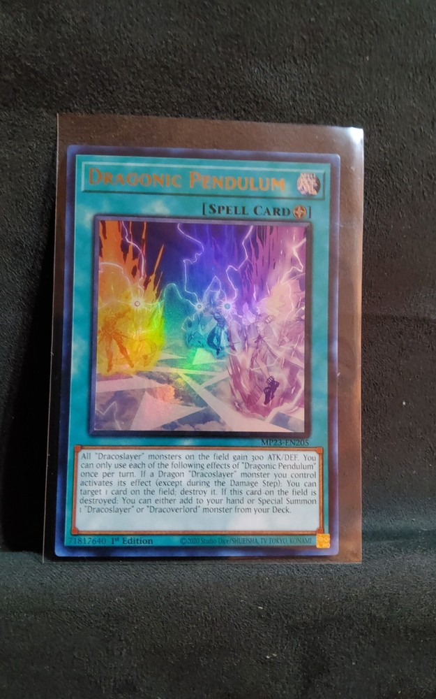 Elevate your Yu-Gi-Oh! TCG collection with the Dragonic Pendulum card, a must-have for enthusiasts and competitive players alike. From the 25th Anniversary Tin: Dueling Heroes Mega Pack, this Ultra Rare Spell-Field card bears the card number MP23-EN205 and is presented in English. Its inclusion in the 1st Edition release makes it a sought-after piece for collectors. Konami, the renowned manufacturer, ensures the quality and authenticity of this card, which features the heroic creature/monster type. As a strategic addition to your deck, Dragonic Pendulum offers an edge in gameplay, encapsulating the thrilling essence of the Yu-Gi-Oh! universe.