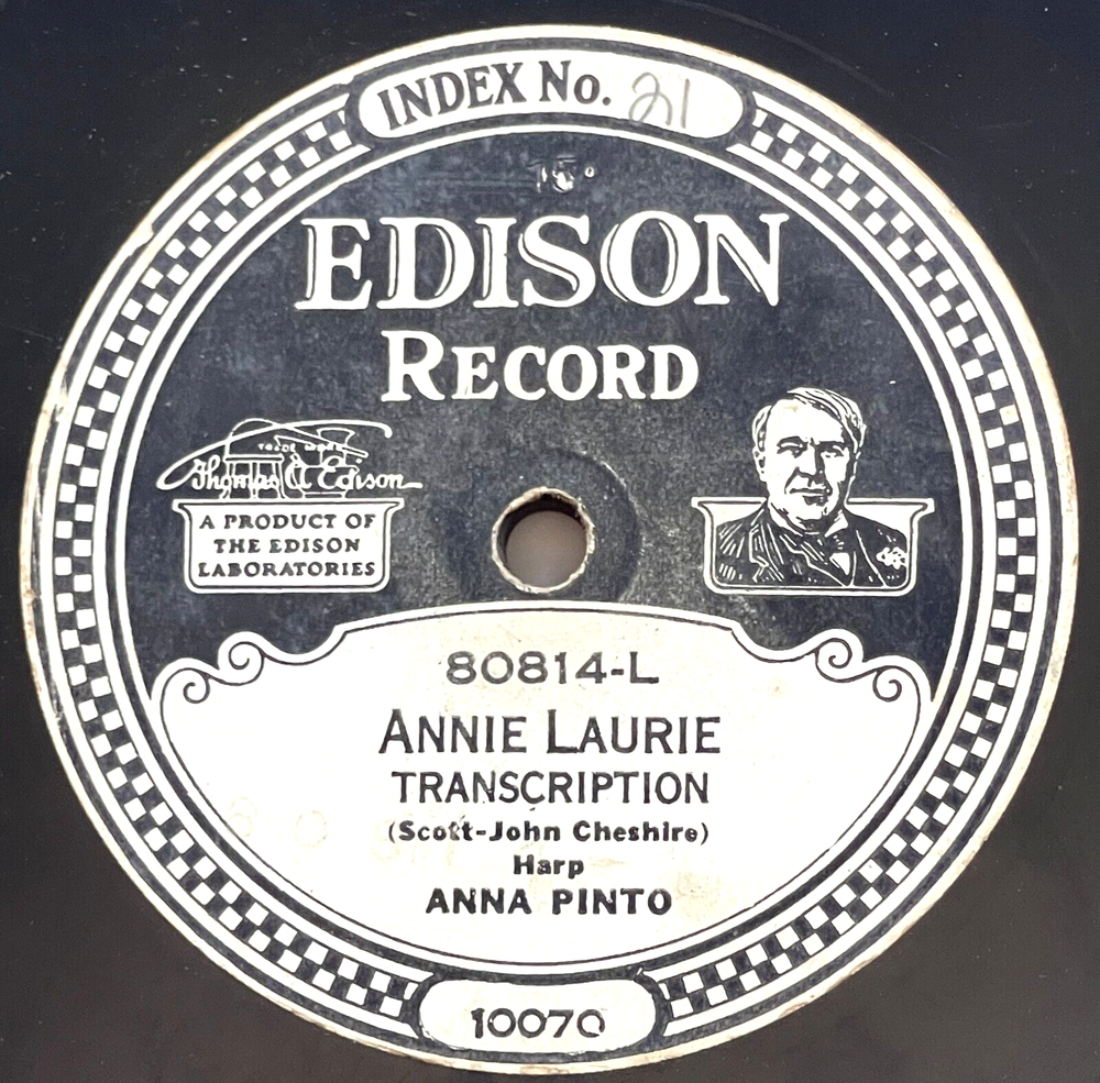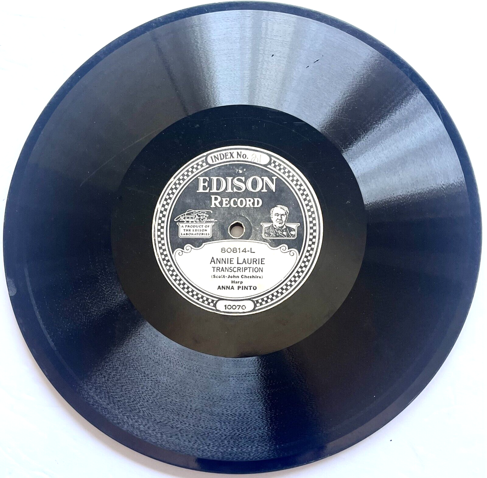 EDISON RECORD 80814 "ANNIE LAURIE" / "LUCIA DI LAMMERMOOR" ANNA PINTO ORIGINAL THICK 1/4" ANTIQUE EDISON RECORD 10" DOUBLE SIDED 78RPM PHONOGRAPH RECORD IN GOOD CONDITION SOME VISABLE SCRATCH MARKS. A "PRODUCT OF THE EDISON LABORATORIES". PLAYS ON EDISON PHONOGRAPHS. UNTESTED. SOLD AS IS AS SHOWN WITH NO RETURNS. PLEASE VIEW IMAGES OF ACTUAL ITEM WITH MAGNIFIER FOR CONDITION AND ASK QUESTIONS. BID WITH CONFIDENCE ~ 100% POSITIVE FEEDBACK ~ THOUSANDS OF EBAY TRANSACTIONS! ~ OVER 25 YEARS SELLING ON EBAY! ~ VISIT OUR EBAY STORE! PLEASE VIEW IMAGE AND EMAIL ANY QUESTIONS ! BUY IT NOW IS PAY FOR IT NOW ~ AUCTION PAYMENT DUE AT AUCTIONS END