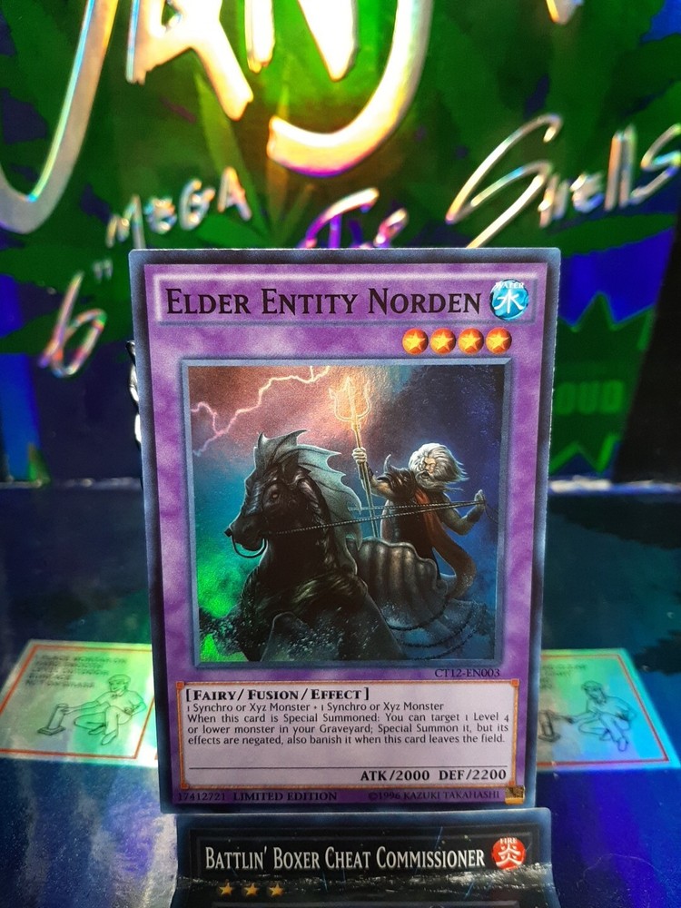 The product is a Super Rare Yu-Gi-Oh! trading card named Elder Entity Norden. It is part of the Yu-Gi-Oh! card game and is recommended for children ages 7 and older. The card belongs to the Character Family of Yu-Gi-Oh and is a Limited Edition card, denoted by the CT12-EN003 code. This collectible card appeals to both boys and girls who enjoy playing the Yu-Gi-Oh! TCG.