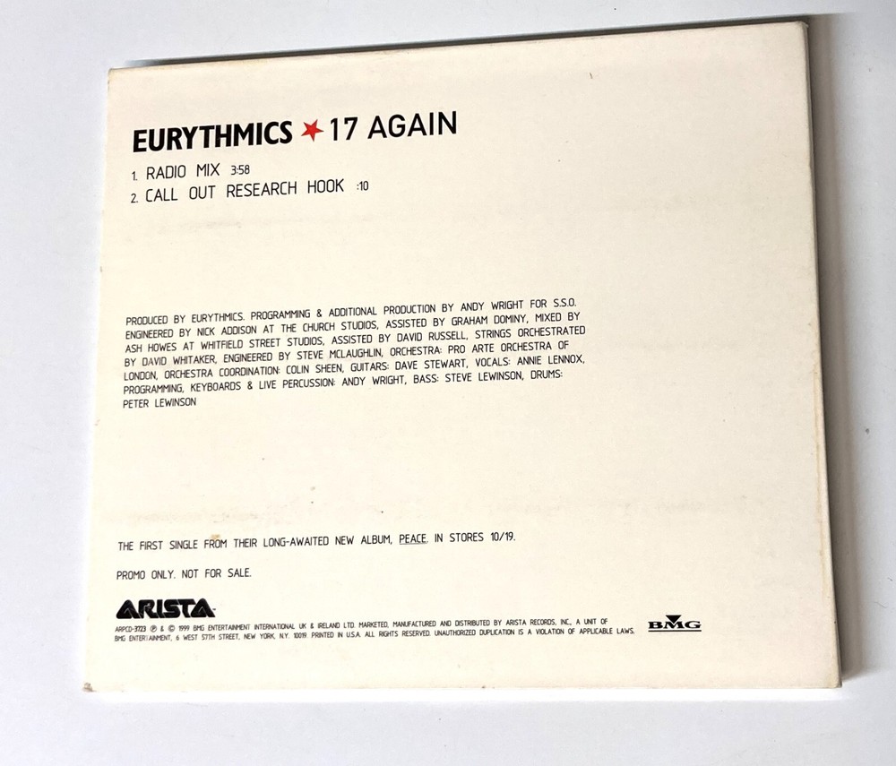 This rare promo CD of *17 Again* by Eurythmics is a must-have for collectors! Mint condition, never sold in stores, and free shipping in the US—what more could you ask for? Annie Lennox’s vocals shine, and the exclusive tracks make it a gem for any fan. Snag it before it's gone!