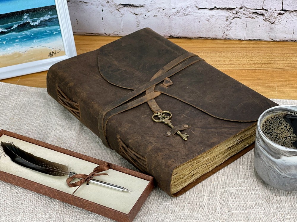 This vintage leather journal is a stunning masterpiece—the rich, rustic brown leather feels luxuriously soft and develops a beautiful patina over time. The handmade deckle-edged pages add an old-world charm, making every entry feel like a timeless treasure. With 400 thick, high-quality pages, it’s perfect for writers, artists, or anyone who appreciates artisanal craftsmanship. The leather’s rich scent and heirloom-quality construction make it more than just a notebook—it’s an experience. Absolutely worth it for those who love elegant, durable journals.