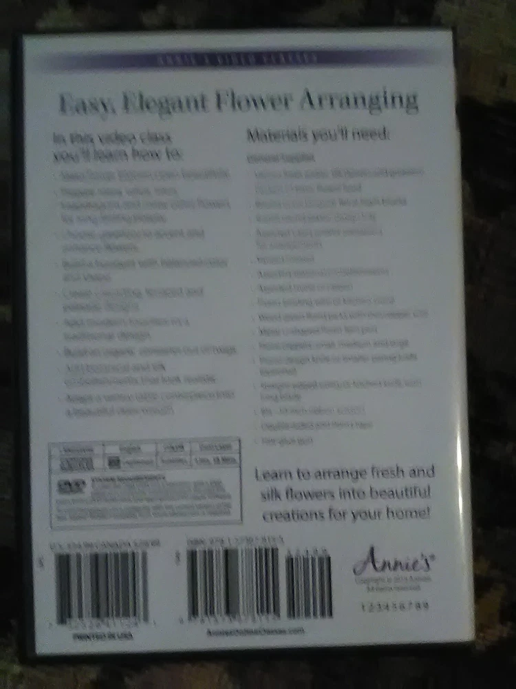 Easy Elegant Flower Arranging With instructor Cydney Davis-English Video Class Instructional DVD Disc 1 Video Class Instructional DVD Disc 2 Pattern CD 2015 Annie's UPC 9781573678155 No guide book, or book included Library stickers and marks Sound and pictures very good Tested already Free shipping and delivery to USA Please add $ 42.75 to USPS Priority Mail International Padded Flat Rate Envelop Service 6 - 10 Business days to many major markets Thanks Have a great day Be Ok All...