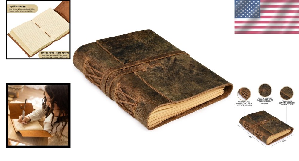 Elegant Handmade Leather Journal - A5 Size, 260 Pages, Perfect Gift for Writers < class="slides"> ‹ › ‹ › ‹ › ‹ › ‹ › ‹ › ‹ › ‹ › ‹ › ‹ › Elegant Handmade Leather Journal - A5 Size - 260 Pages - Perfect Gift for Writers Product Features: <> Handmade Vintage Leather: Crafted from distressed brown leather, this journal showcases a rustic and timeless charm. Ample Writing Space: The A5 size (8" x 6") with 260 lined pages provides abundant room for writing, note-taking, and sketching. Paper Quality: Featuring 100 GSM thick paper, it is suitable for pencils, ballpoint, rollerball, gel pens, and fountain pens, minimizing smudging and bleeding. Secure and Unique Design: The leather flap style cover and strap closure ensure your writings are safely protected, while the leather cord binding enhances durability and charm. Versatile Use: Ideal as a notebook, daily journal, travel diary, appointment book, or sketchbook; perfect for professionals, students, and artists. Emotional Connection: This Elegant Handmade Leather Journal is not just a product; it is a gateway to creativity and self-expression. Encased in lovingly crafted leather, each page invites you to fill it with your thoughts, dreams, and sketches, making it a cherished companion in your journey of life. Why This Journal Makes The Perfect Gift: Looking for an extraordinary gift for a writer or journal enthusiast? This sophisticated journal is ideal for individuals who appreciate craftsmanship and the beauty of the written word. Its vintage appeal and unique design transform it into a timeless keepsake, perfect for celebrations, graduations, or simply to encourage a loved one to embrace their creativity. Order your Elegant Handmade Leather Journal today and inspire the writer or artist in your life! Shipping <> <> Free & Fast Shipping - We offer free shipping to most of the USA with a normal delivery time of 3-7 days. However, due to the current situation, additional delivery time (up to 3 weeks) may be required for some items. Alternative Carriers - We may use alternative carriers (e.g. USPS, FedEx, UPS, etc.) to ensure your package arrives safely and on time. Due to the use of multiple carriers, we are unable to provide a tracking number automatically. Handling Time - Orders are processed and shipped within 1-2 business days of receiving cleared payment. Shipping Restrictions - Shipping to Alaska, Hawaii, Puerto Rico, Guam, and other US territories may incur shipping charges or delivery restrictions. Please contact us before ordering, or your order can be refunded/cancelled. State Restrictions - There may be restrictions based on your state of purchase. For example, certain items may not be shipped to California due to state regulations. Contact for Tracking Updates - If you require tracking updates or have any concerns about the delivery of your order, please feel free to contact us, and we will be happy to assist you. Return <> <> 30-Day Hassle-Free Returns - We want you to be completely satisfied with your purchase. If you are not, you can return the item within 30 days of receiving it for a full refund or exchange. Easy Return Process - To start a return, simply contact us and we will provide you with a prepaid return shipping label and detailed instructions. Restocking Fee - There are no restocking fees for returns. However, the buyer is responsible for return shipping costs if the return is not due to a seller's error. Refund Processing Time - Refunds will be processed within 5 business days of receiving the returned item in its condition. Payment We accept all major credit cards, PayPal, and Apple Pay for your convenience. Your payment information is secure and encrypted to ensure a safe and seamless transaction. Please complete your payment within 3 days of purchase to avoid any delays in shipping. Feedback Your feedback is extremely important to us. We strive to provide the best products and customer service possible. If you are satisfied with your purchase, please take a moment to leave us a positive review. If you have any concerns or issues with your order, please contact us before leaving negative feedback. We are committed to resolving any problems and ensuring your satisfaction. Contact Us If you have any questions or concerns, please feel free to out to our customer support team. You can contact us through the eBay messaging system. We are available Monday to Friday, 9:00 am to 5:00 pm EST, and we will do our best to respond to your inquiry within 24 hours. Buy it now and enjoy a pleasant shopping experience! MPN: Leather_Bound_Journal Unit Quantity: 1 Special Attributes: Leather Bound Journal Cover Material: Leather Country/Region of Manufacture: Leather Bound Journal Unit Type: Unit