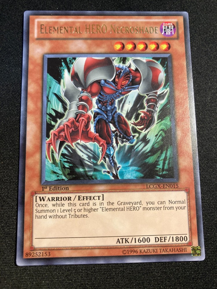 Elemental HERO Necroshade LCGX-EN015 - 1st Edition - Rare - NM You are bidding/buying one (1) card. If you would like additional pictures, just ask. _________________________________________________________________________________________________________ Please check out my other listings @ https://www.ebay.com/str/lechungscards I ship all cards in a penny sleeve put into a top-loader and put into a standard envelope. If you have any question or concerns, please feel free to send me a personal message using the e-bay system. Thanks! !NO INTERNATIONAL SHIPPING OR SALES! (Including Canada)