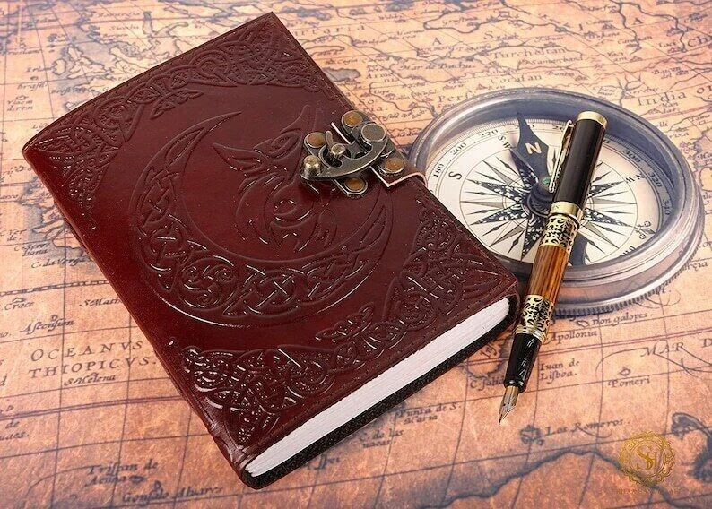 Introducing our Embossed Leather Journal, a stylish and versatile companion for all your writing needs. Crafted from high-quality brown leather, this notebook exudes elegance and durability. Whether you're a frequent traveler or simply enjoy jotting down your thoughts, this travel journal is designed to accompany you on all your adventures. With 200 pages of premium paper, there's ample space to capture your ideas, memories, and inspirations. The brass lock adds a touch of sophistication while ensuring the security of your precious writings. Experience the joy of writing with our Leather Diary, a timeless piece that combines functionality with exquisite craftsmanship.