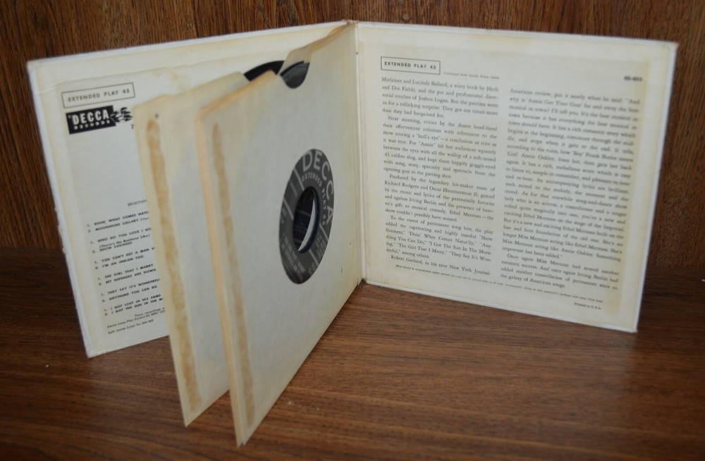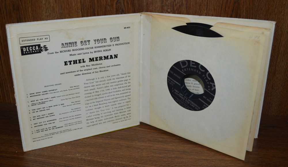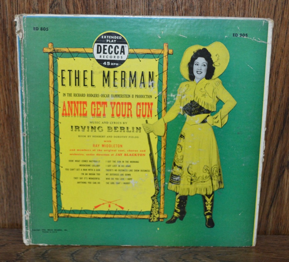Ethel Merman Annie Get Your Gun 45 rpm set Decca Album ED 805 - 1954 If you like what you see then why not check out our store for other fun and unique items. We have many items for sale. And visit often as we are continuously adding new, unique & exciting items to our store.