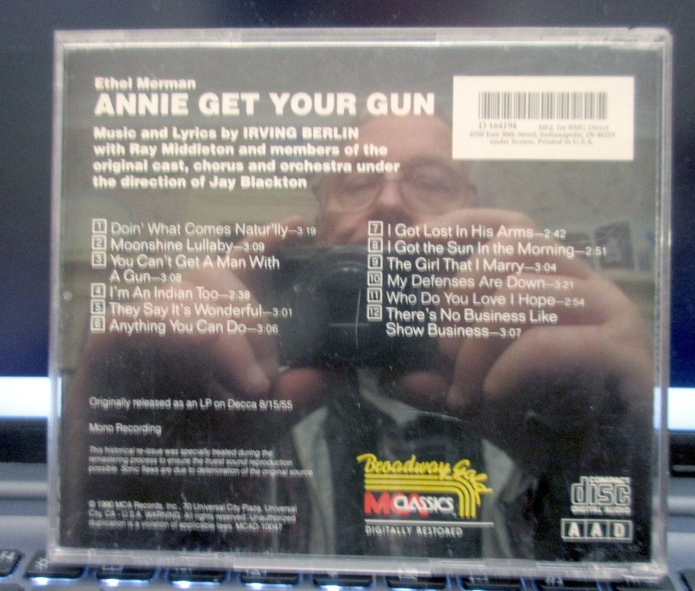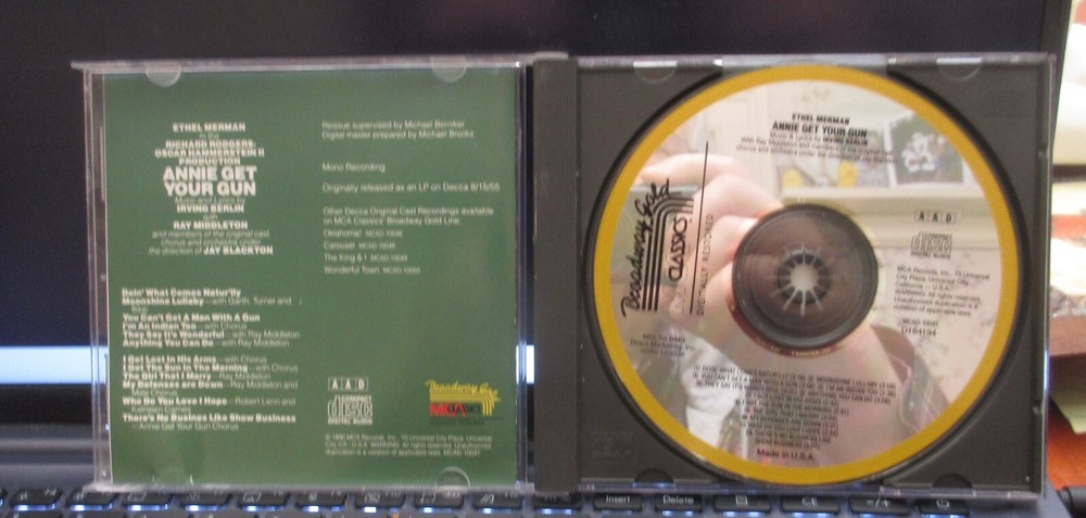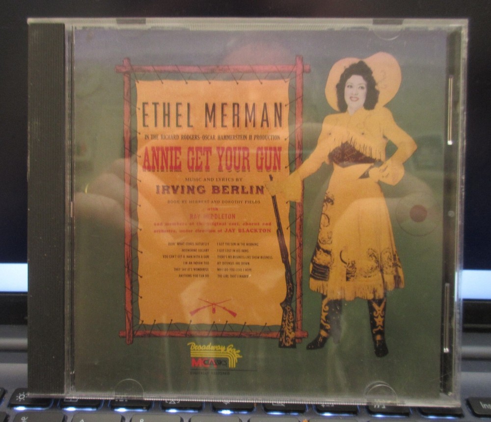 This is Ethel Merman "Annie Get Your Gun" - CD. The CD and jewel case are used but still in playable condition. The playlist is in the pictures. See pictures for best description. All questions welcome ahead of time to avoid confusion later. This item has been in a smoke free/ climate controlled home. Thanks for looking. COMBINED SHIPPIN available on ALL items.
