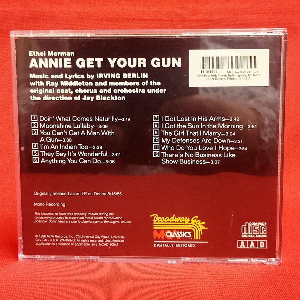 Ethel Merman Annie Get Your Gun Original Cast Album Audio CD 1990 Your item may come in a re-used box with some labeling from other companies In my effort to recycle and re-use. Thank you for supporting my small business. Features: • Audio CD Condition: Pre-Owned Good