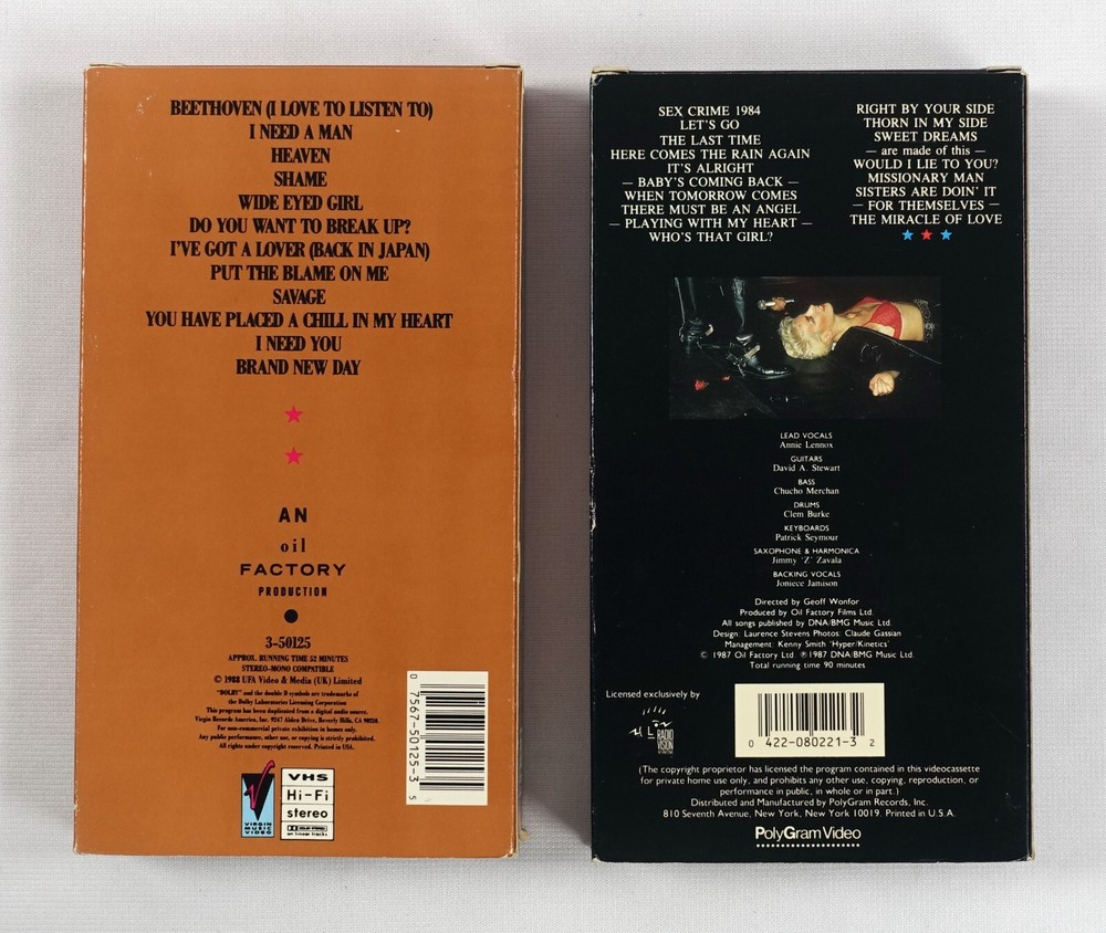 Eurythmics 2 VHS Video Tape Lot 1. Savage 2. Live These VHS tapes are in excellent condition overall. They have not been tested but should play through without major problems based on their visual condition. The boxes have some wear but no major issues. Please check the photos to get a better idea of the condition. Check out my other listings for more VHS tapes! Payment Payment must be received within 4 days after I send the invoice. I am willing to work with you if you need more time, but I will cancel the order if I do not hear from you within 4 days! You will also be permanently blocked from purchasing my items in the future. Combined Shipping I am happy to combine shipping on multiple items, but I can't quote exact rates until I package them. So please wait for me to send a combined invoice if you buy more than one item. Local pickup is available for any item. Offers & Package Deals Please note that I do not consider offers! I will not end any listing early so please do not ask! Please don't ask for package deals on multiple items and I will not do any deals off of eBay. I will not respond to any questions asking for any of the above!
