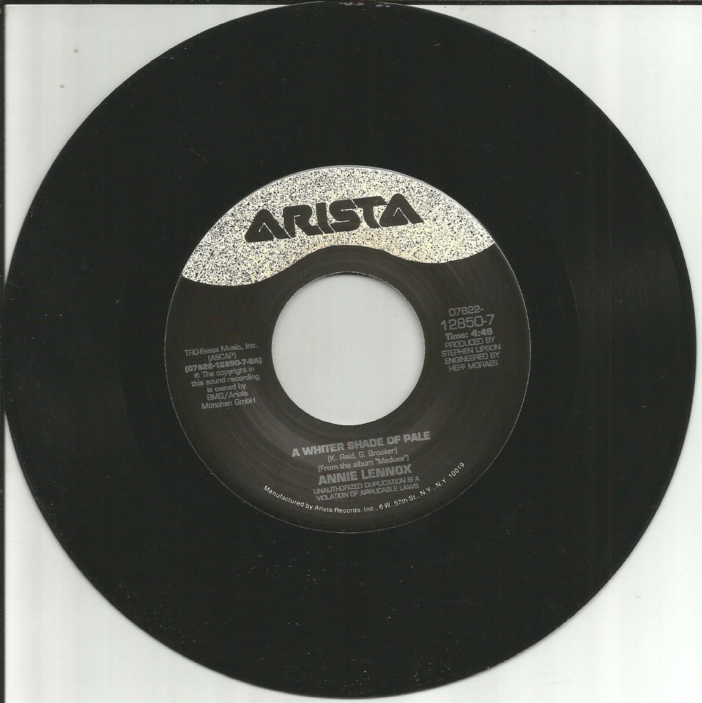 1995 MINT CONDITION RECORD VINYL & MINT condition SLEEVE , THIS IS BRAND NEW AND NEVER PLAYED Comes in a white sleeve e (IT WAS ISSUED THIS WAY) THIS WAS MADE IN USA ONLY THIS IS HER REAMEK COVER VERSION OF A PROCOL HARUM SONG THIS IS ANNIE LENNIOX OF THE EURYTHMICS THIS WAS MADE IN ULTRA LIMITED QUANTITY IT WAS MADE BY Arista Records and is stock number 12850 A A Whiter Shade Of Pale 4:49 ( procol harum remake cover version) B No More "I Love You's" 4:28 THIS IS 100% AN OFFICIAL RELEASE International shipping Available Any questions please ask PLEASE SEE OUR OTHER ITEMS FOR OTHER RARE 7 INCHES /ANNIE LENNOX/EURYHTMICS & WE DO COMBINE SHIPPING Sale of this item is specifically allowed under the copyright laws of the United States {17 USC 109(a)} which states that "the owner of a particular copy or phonorecord lawfully made...is entitled, without the authority of the copyright owner, to sell or otherwise dispose of possession of the copy or phonorecord". THIS ITEM IS 100% OFFICIAL AND RELEASED BY THE RECORD LABEL, if you have any questions or concerns about this item please contact us and we can resolve any issue immediately