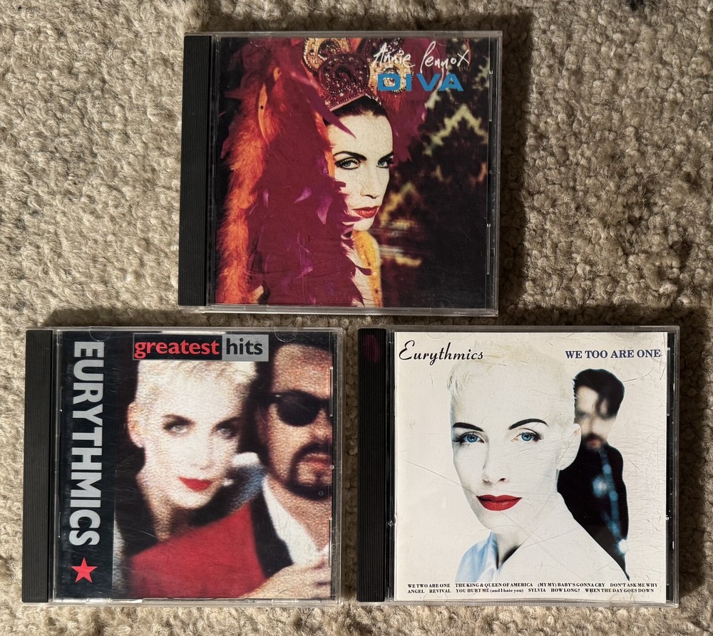 Eurythmics and Annie Lennox CD Lot of 3. Included are Diva, Greatest Hits and We Too Are One. The CDs and cases are in very good or better condition. Please message with any questions. Ships with USPS...