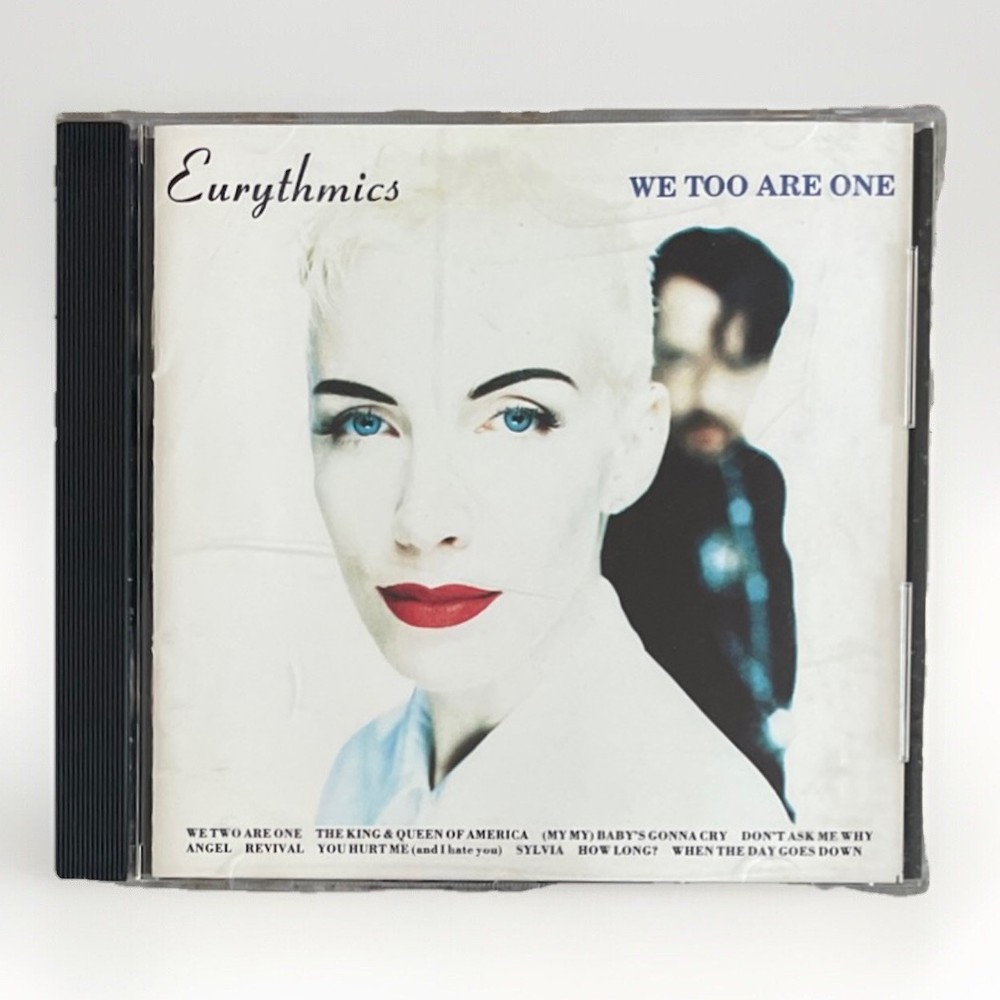 The product is the CD release of "We Too Are One" by Eurythmics, featuring Annie Lennox. This pop rock album was released in 1989 under the Arista record label in the United States. The CD is in very good plus (VG+) condition and comes in a standard jewel case with the original cover. With hits like "Revival" and "Don't Ask Me Why," this Eurythmics album showcases their unique sound and Annie Lennox's powerful vocals.