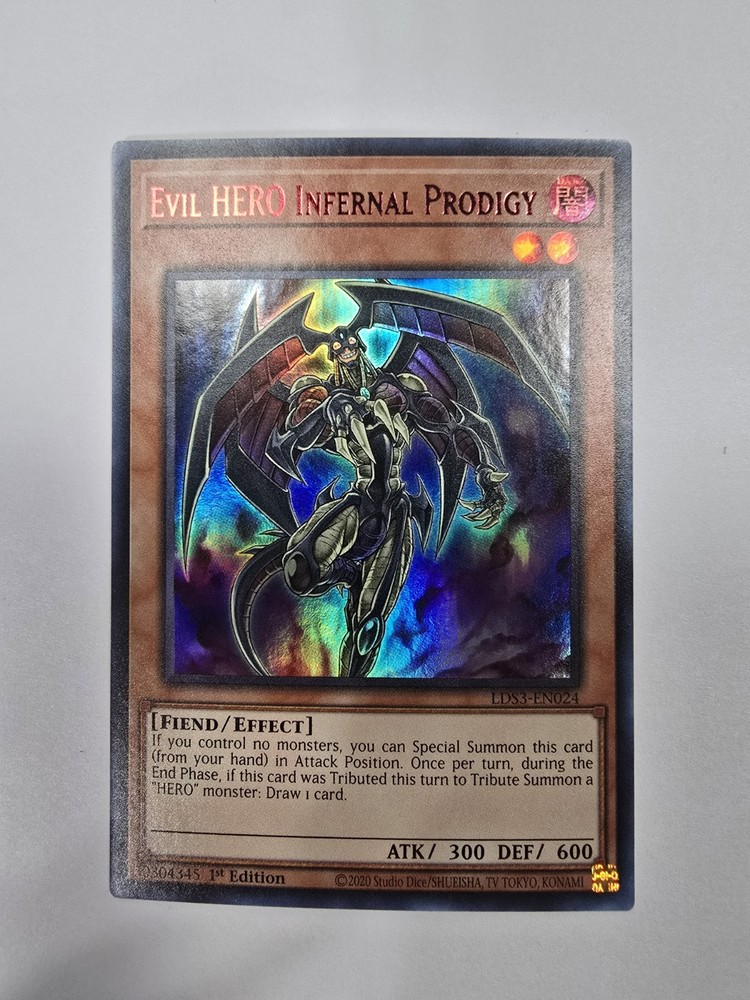 This Evil HERO Infernal Prodigy card is a must-have for any serious collector! The vibrant red foil and crisp 1st Edition print make it stand out. Quick shipping and great condition—highly recommend this seller for rare Yu-Gi-Oh! finds.