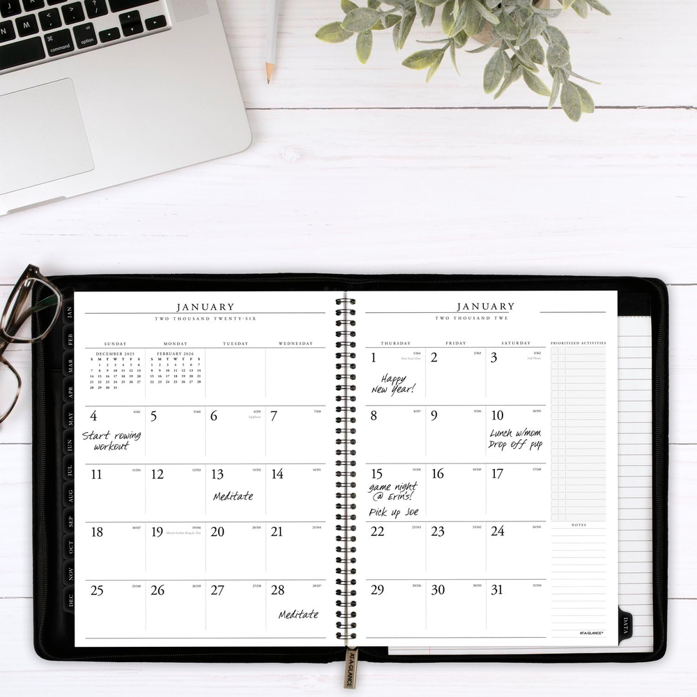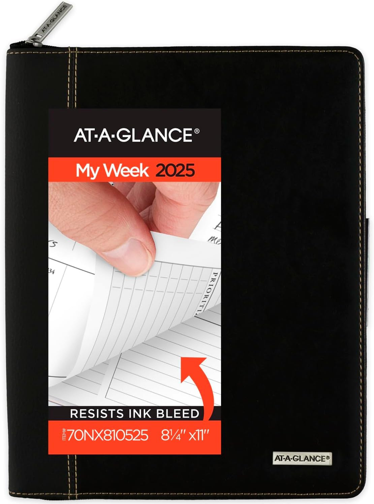 Menu Other Items Feedbacks About Us Contact Us Add To Favorites Executive 2025 Appointment Book Planner, Weekly & Monthly, 8-1/4" X 11", Large, Zipper, Black (70NX810525) YEAR ROUND PLANNING – Planner covers 12 months from January 2025 — December 2025 with Julian dates GUARANTEED TO LAST ALL YEAR – ACCO Brands will replace any defective AT-A-GLANCE planner that is returned within one year from the date of purchase. This does not cover damage due to misuse or abuse. INK BLEED RESISTANCE – Plan your schedule without fear of distracting ink bleeding. Our high-quality paper is designed for ink bleed resistance, which keeps plans neat and legible. WEEKLY VIEWS – One week per two page spread features quarter-hourly appointments 8:00 a.m. — 5:45 p.m. Monday to Friday with space for notes and priorities. Condensed weekends are untimed for flexibility. Pages measure 8-1/4" x 11". MONTHLY OVERVIEWS – One month per two page spread has unruled daily blocks and past and future month calendars for quick reference. Months are tabbed for easy navigation. SPECIAL FEATURES – Includes removable, ruled notepad. Special pages include important dates, future planning, expense tracking and contacts pages. PROFESSIONAL DESIGN – Take charge of your schedule with classic style. Zipper closure helps keep your plans secure. Planner has a durable black faux leather cover and twin wire binding to help prevent snags and secure pages. REFILL AVAILABLE – Weekly planning page refill (70911) Confidently face every deadline this year with the AT-A-GLANCE Executive Weekly Monthly Appointment Book Planner. Date range covers 12 months from January 2025 — December 2025 with Julian dates. Guaranteed to last all year.* Plan your schedule without fear of distracting ink bleeding. High-quality paper is designed for ink bleed resistance, which keeps plans neat and legible. One week per two page spread features quarter-hourly appointments 8:00 a.m. — 5:45 p.m. Monday to Friday with space for notes and priorities. Condensed weekends are untimed for flexibility. Pages measure 8-1/4" x 11". Great for long-term planning, each one month per two page spread features unruled daily blocks for open scheduling. Monthly pages feature space for notes and priorities. Months are tabbed for easy navigation. Expand your organizational skills with special features. Includes removable, ruled notepad. Special pages include important dates, future planning, expense tracking and contacts pages. Take charge of your schedule with classic style. Zipper closure helps keep your plans secure. Planner has a durable black faux leather cover and twin wire binding to help prevent snags and secure pages. Weekly planning page refill (70911) and notepad refill sold separately. *ACCO Brands will replace any AT-A-GLANCE planner that is returned within one year from the date of purchase. This does not cover damage due to misuse or abuse. Item Specification Item model number 70NX810525 Ink Color Black Style 2025 New Edition Material Paper Special Feature Removable Notepad, Special Pages (Important Dates, Future Planning, Expense Tracking, Contacts) Number of Items 1 Format Notebook, Organizer Color Black Material Type Paper Cover Material Faux Leather Calendar Type Weekly & Monthly Binding Spiral-bound Manufacturer Part Number 70NX810525 Item Weight 2.56 pounds Pattern Name Cover & Refill - Large Ruling Ruled (some pages) Year 2025 Target Audience Teacher, Adult, Student Product Dimensions 12.5 x 10 x 1.2 inches Dimensions Shipping Returns Additional Info Product Dimensions: 10.0 inches x 12.5 inches x 1.2 inches. Weight: 2.56 lb Fast shipping is very important for us. Our standard shipping service is FREE. Your order will be shipped within 1-3 business days upon full payment received. Most items are delivered within 3-5 business days, however, please allow 3-10 business days. We are shipping only to USA. We only ship to the confirmed Paypal address. We reserve the right to cancel any order for any reason at any time. We are not responsible for undeliverable addresses. We offer a 30 day return policy from checkout winning date. Your satisfaction is guaranteed! If for any reason you are unhappy with your item, just return it within 30 days for a full refund, minus shipping cost. Please contact us prior to initiating a return so that we can issue you a refund authorization. Items defective upon receipt must be packaged in their retail packaging as if new and returned with a detailed description of the problem. Return shipping fees are not refundable. We reserve the right to decline any returns if the above guidelines are not followed. All of our items, unless otherwise stated, will only run on 120 volts. Please check to make sure your country complies with these specifications. If you have a problem or question regarding your transaction please contact us before leaving any type of feedback. We will work with you to resolve any problem you may have.