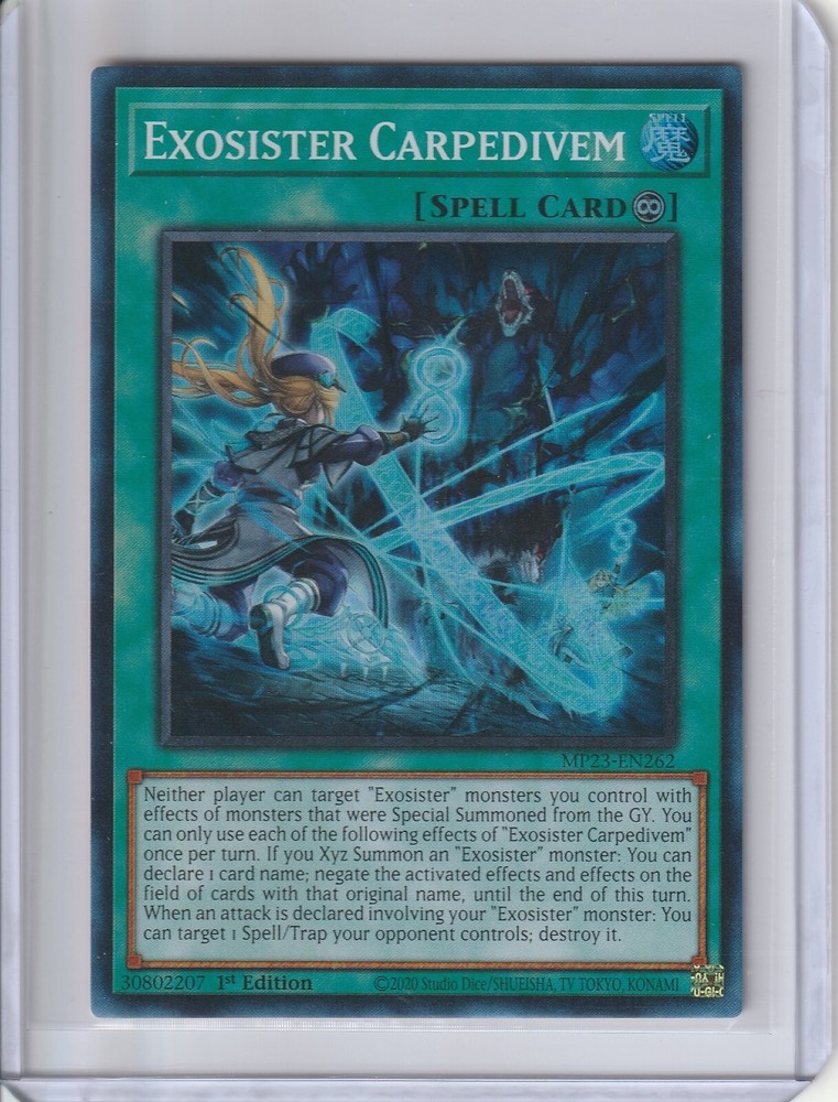 Exosister Carpedivem is a must-have for any serious Yu-Gi-Oh! player—its Super Rare finish and powerful continuous spell effect make it a game-changer in Exosister decks. Pulling this from the 25th Anniversary Tin felt amazing, and the card’s quality is top-notch. Whether you’re collecting or competing, this 1st Edition gem adds serious value. The artwork is stunning, and it fits perfectly into my strategy. Konami nailed it with this release—highly recommend grabbing one before they’re gone!