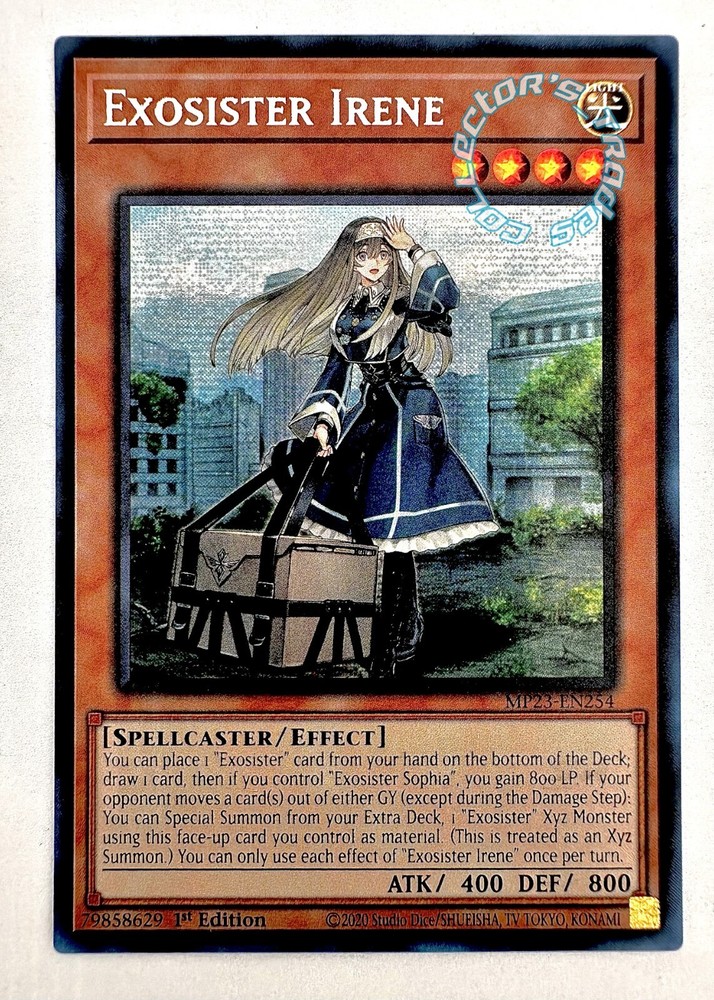 " Exosister Irene" MP23-EN254 Prismatic Secret Rare Yu-Gi-Oh! 25th Anniversary Tin: Dueling Heroes Mega Pack Near Mint - Level 4 - - Light Monster - - " Exosister Irene " - - No.254 - - Prismatic Secret Rare - - 2023 Yu-Gi-Oh! - 25th Anniversary Tin: Dueling Heroes Mega Pack - - 1st Edition – - Spellcaster/Effect - - ATK/400|DEF/800 - - 100% Authentic Yu-Gi-Oh! - - Near Mint - - Disclaimer- No replacements can or will be shipped in case of missing/broken package. If you have any questions, comments, or concerns, please feel free to contact me. Thank you for your interest in our listings and store and please come again!