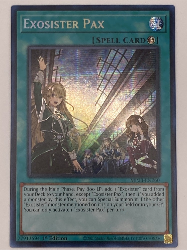 Unleash strategic advantages in your next duel with the Exosister Pax MP23-EN260 from the 25th Anniversary Tin: Dueling Heroes Mega Pack. As a Spell-Quick Play card, it offers dynamic gameplay options, perfect for those looking to turn the tide in their favor. Exosister Pax shines with its Prismatic Secret Rare rarity, ensuring it stands out in any collection. Produced by Konami and designed for players aged 6 and up, this card is a must-have for both seasoned players and collectors seeking to add a touch of brilliance to their game. Thank you for viewing our Yu-Gi-Oh cards on eBay! This card has come straight from the booster pack straight to a penny sleeve. If you have any questions or issues, please do not hesitate to reach out to us! We will do everything we can to assist you! Thank You!