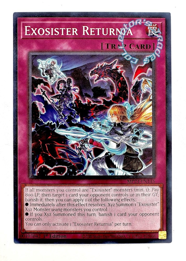 " Exosister Returnia" MP23-EN145 Common Yu-Gi-Oh! 25th Anniversary Tin: Dueling Heroes Mega Pack Near Mint - "Exosister Returnia " - - Trap Card (Normal/Effect) - - No.145 - - Common - - 2023 Yu-Gi-Oh! - 25th Anniversary Tin: Dueling Heroes Mega Pack - - 1st Edition - - Normal/Effect - - 100% Authentic Yu-Gi-Oh! - - Near Mint - - Disclaimer- No replacements can or will be shipped in case of missing/broken package. If you have any questions, comments, or concerns, please feel free to contact me. Thank you for your interest in our listings and store and please come again!