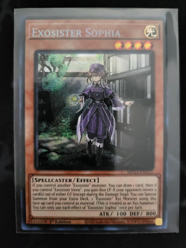 The Exosister Sophia MP23-EN255 25th Anniversary Tin: Dueling Heroes Mega Pack is a highly sought-after Yu-Gi-Oh! trading card featuring the Dueling Heroes theme. This Prismatic Secret Rare card, with an Attribute of Light, is a Spellcaster creature with 800 Defense/Toughness and 100 Attack/Power. Manufactured by Konami, this English language card is a 1st Edition release, making it a valuable addition to any collector's deck. The Exosister Sophia card is sure to be a standout in any Yu-Gi-Oh! TCG collection.