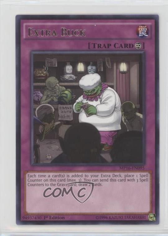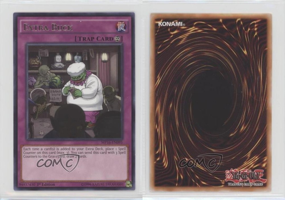 2016 Yu-Gi-Oh! Mega-Tin - Mega Pack [Base] - 1st Edition #MP16-EN095 Extra Buck COMC Item: 172308548 - YuGiOh Card - Featuring Extra Buck Search for more: 2016 Yu-Gi-Oh! Mega-Tin Search for more: 2016 Yu-Gi-Oh! Mega-Tin - Mega Pack [Base] - 1st Edition View all of our Listings Auctions Buy It Now About Us Located in the beautiful Pacific Northwest, COMC (Check Out My Cards) is the world's largest consignment service for trading card singles. More than 10,000 people have used our consignment service to list over 50 million trading cards. Find out how we can help you consign your items on eBay by contacting us through eBay messaging. COMC -- "The Safe & Easy Way to Buy & Sell" Raw Condition for Modern Cards Unless otherwise noted, raw modern cards are listed in Near Mint-Mint condition or better. A NM-MT card appears to be Mint at first glance, but upon closer inspection, may exhibit some of the following: minor print defects (e.g. roller marks, print line, dimple), minor scratches, slight edge wear, and slight corner wear. Centering is clearly visible in the images provided and does not factor into our condition assessment. Raw Condition for Vintage Cards Unless otherwise noted, raw vintage cards are listed in Excellent condition or better. An EX card may exhibit some of the following: minor rounding of corners, surface wear, print defects, light scratches, and slight edge wear/chipping. Centering is clearly visible in the images provided and does not factor into our condition assessment. Domestic Shipping Combined shipping for multiple items is available. To receive combined shipping, please ensure all desired items are in your eBay shopping cart before proceeding to checkout. eBay limits orders to 40 items per order. We automatically combine multiple orders placed on the same day. If you place multiple orders on the same day, please contact us to request a refund of applicable shipping costs. Signature confirmation may be required on invoices over $400. All cards are protected and shipped securely. International Shipping COMC offers eBay's International Shipping (EIS) for international orders under $2,500* (see country exceptions below). All duties and import fees are paid at checkout; in the rare event that there are additional import fees upon delivery, these are borne by the buyer. EIS packages route through a shipping hub in Erlanger, KY before shipping to their final destination. Please note that EIS does not allow for combined shipments. The shipping rates are determined by eBay and cannot be adjusted. *Maximum sale price exceptions: Colombia, Kuwait ($2,000); Taiwan ($1,539); Chile, Costa Rica, Guatemala, Honduras, Trinidad and Tobago ($1,000); Antigua and Barbuda, Aruba, Belize, Dominica, Grenada, Philippines, Saint Kitts and Nevis, Saint Lucia, Montserrat, Turks and Caicos Islands ($500); Dominican Republic, El Salvador ($200). Please request a shipping quote through eBay messaging for orders that exceed the maximum sale price supported by eBay's International Shipping. You will be responsible for all duties and import fees for international orders shipped outside the EIS. All cards are protected and shipped securely. Payment COMC does not accept offers on our cards through our eBay storefront. COMC utilizes eBay’s managed payments system. If you are experiencing difficulties making a payment, please contact eBay for assistance. Return Policy Returns are only accepted on the rare occasion the item is not as described. If you are making a return, please initiate the return process through eBay so a mailing label can be provided for you. Prior to listing, our expert team carefully assessed this item to represent it accurately. Please review the description and high-definition images prior to purchasing to ensure this item meets your satisfaction. We welcome you to contact us if you have further questions about this item. Trust and Integrity COMC carefully assesses each item consigned to us to prevent fraudulent items from entering the marketplace. If you believe an item offered on COMC may be fraudulent, please contact us with details so we can investigate the issue. Items we determine are outside our supported items policy may be removed. Last Modified: 6/3/2025 5:25:54 AM PDT