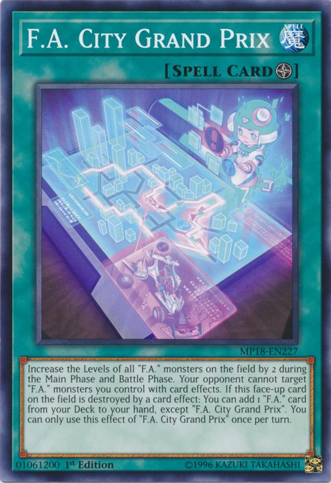 F.A. City Grand Prix - MP18-EN227 - Common - 1st Edition Image is a stock photo of the card. You will receive the card in Heavily Played condition Condition: Heavily Played ATK/DEF : Attribute : Card Number : MP18-EN227 Card Rules : Card Text : Card Type : Edition : 1st Level : Monster Type : Name : F.A. City Grand Prix Passcode : Pendulum Scale : Rarity : Common Set : 2018 Mega-Tin Mega Pack Be sure to visit our store for a wide selection of your favorite cards! We are running specials RIGHT NOW!! Shipping Options: ~Ships in a regular white envelope with a stamp for FREE! (THERE IS NO TRACKING INFORMATION AVAILABLE FOR THE ABOVE METHOD. SHIPPING TIME IS 4-10 BUSINESS DAYS) ~Ships in a TRACKEDbubble mailer for $5.99! ~Shipments are handled same or next business day. ~FREE SHIPPING for each additional card, so shop around our store!