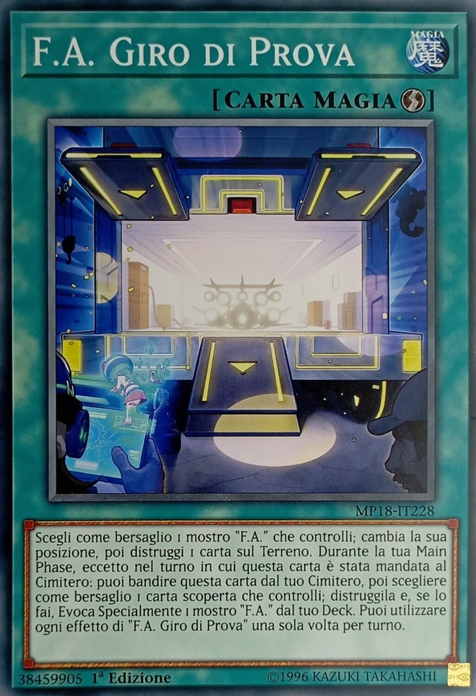 F.A. Giro di Prova - Comune - Mega-Tin 2018 Mega-Pack - MP18-IT228 - Ita - Nuovo F.A. Giro di Prova - Comune - Mega-Tin 2018 Mega-Pack - MP18-IT228 - Ita - Nuovo Scegli come bersaglio 1 mostro “F.A.” che controlli; cambia la sua posizione, poi distruggi 1 carta sul Terreno. Durante la tua Main Phase, eccetto nel turno in cui questa carta è stata mandata al Cimitero: puoi bandire questa carta dal tuo Cimitero, poi scegliere come bersaglio 1 carta scoperta che controlli; distruggila e, se lo fai, Evoca Specialmente 1 mostro “F.A.” dal tuo Deck. Puoi utilizzare ogni effetto di “F.A. Giro di Prova” una sola volta per turno. Shipping Shipping cost: Italy Posta 1 -> 2,95 Corriere Espresso -> 5,99 Outside Italy Priority - 8,00 Delivery time: La Spedizione Viene Effettuata entro i 5 giorni successivi al pagamento dell'ordine. Payment Per qualsiasi info contattateci Service Per qualsiasi info contattateci