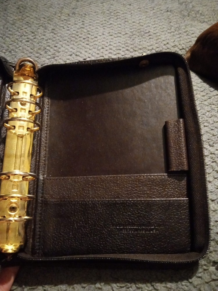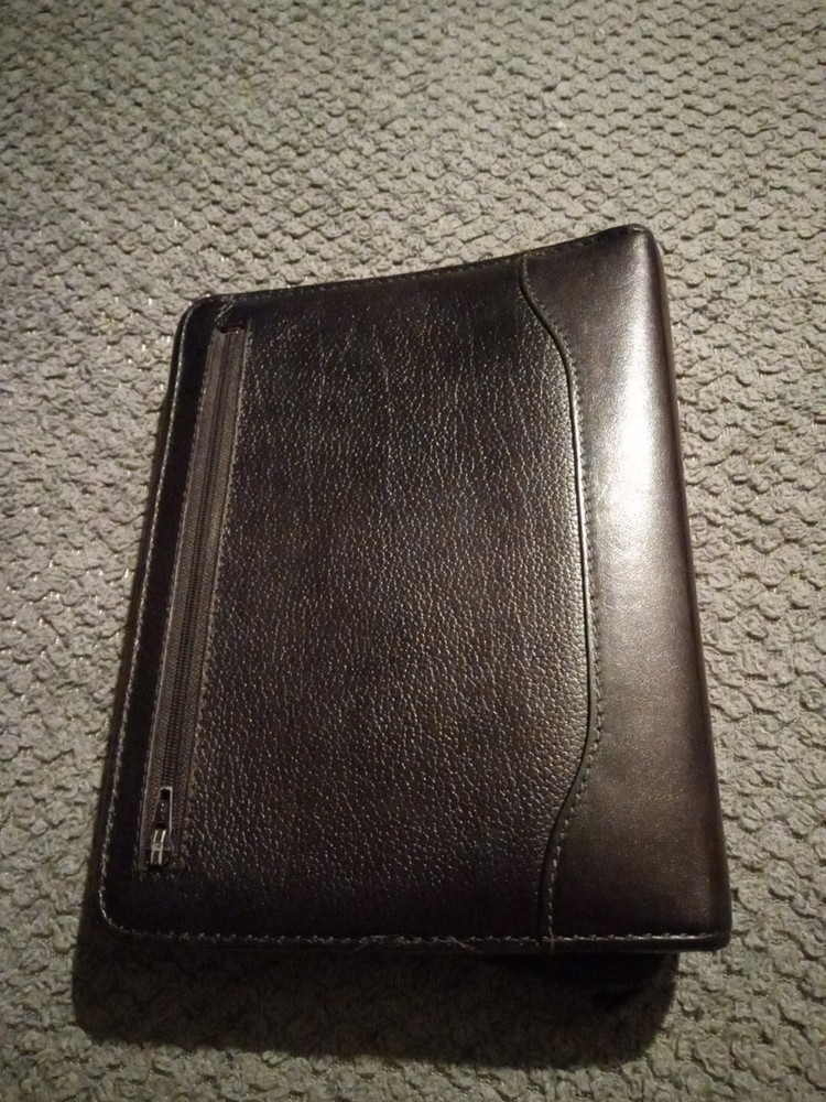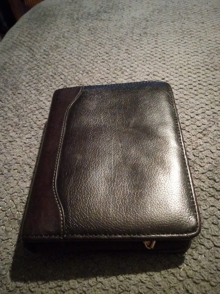 Stay organized and stylish with this Franklin Quest ring-bound planner. Made with high-quality full-grain Verona leather, this medium-sized planner features a convenient zipper closure to keep your important documents and notes safe. The ring binding allows for easy customization and personalization, making it the perfect planner for both personal and professional use. Its sleek design and durable construction make it a must-have for anyone looking to stay on top of their busy schedule and tasks. Needs the planner paper insert paper!!