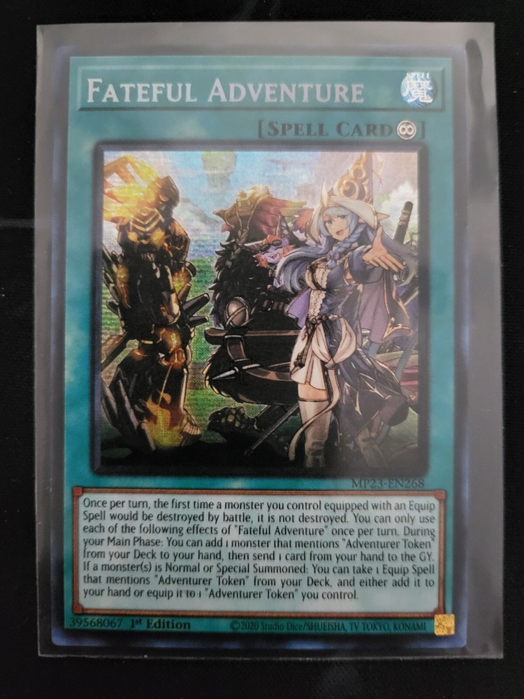 The Fateful Adventure MP23-EN268 card is a Prismatic Secret Rare gem from the 25th Anniversary Tin: Dueling Heroes Mega Pack. Manufactured by Konami and part of the Yu-Gi-Oh! TCG, this English-language card features a Hero theme, making it a valuable addition to any collector's deck. As a 1st Edition Spell-Continuous card, it offers unique gameplay mechanics and strategic advantages for players looking to enhance their repertoire.