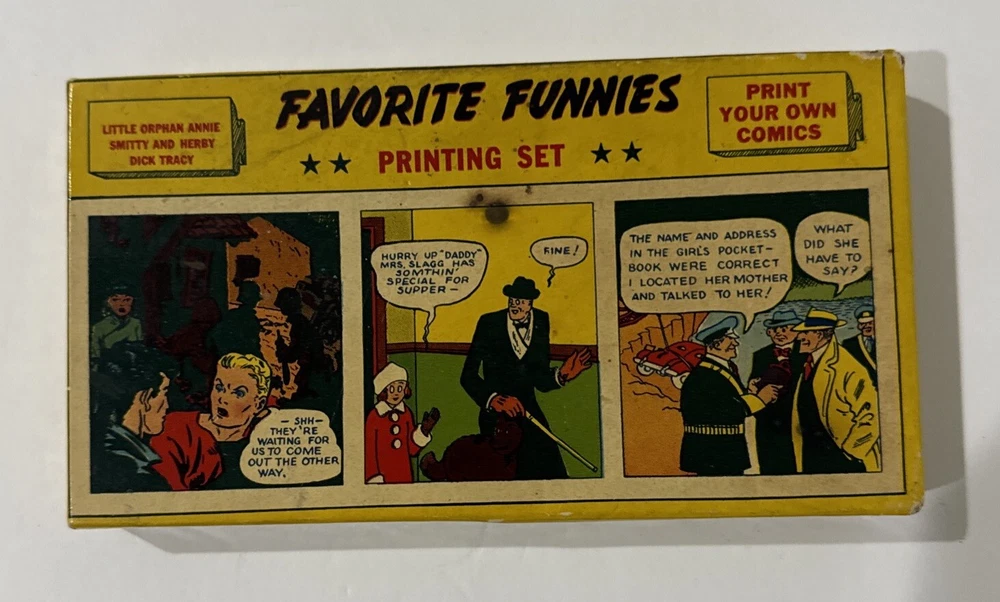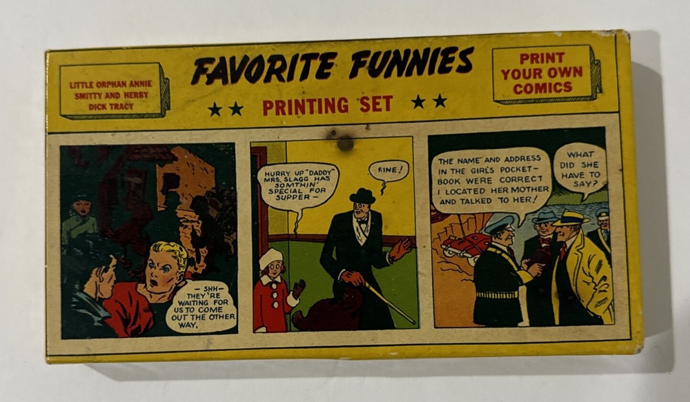 Favorite Funnies Printing Set Dick Tracy, Orphan Annie, Smitty And Henry 1930’s. Please see pictures of this highly sought after collectible piece. Thanks for visiting !!...