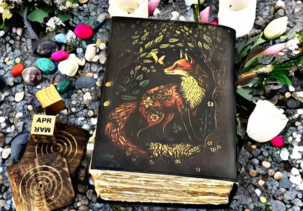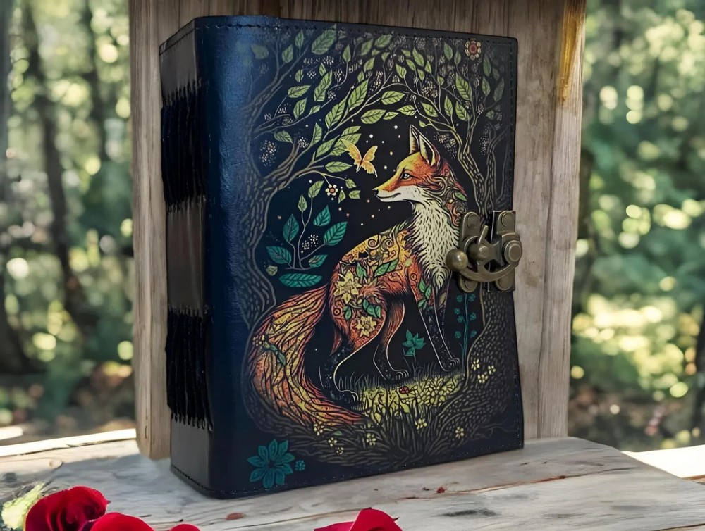 This Fox Leather Journal is a luxurious and rustic vintage piece, perfect for those seeking a unique and personalized writing experience. Handmade in India, this limited edition journal features a luxurious leather cover with a personalized touch. The Grimoire leather design adds a touch of magic and mystery to this special book, making it a perfect companion for those who cherish creativity and self-expression. Perfect for use as a book of shadows or for capturing life's precious moments, this journal is a one-of-a-kind treasure for any individual looking to document their thoughts and feelings in style. Fox Leather Journal Rustic vintage leather - Grimoire leather journal - book of shadows - Fat journal gift for men and women •Fox Leather Journal Rustic vintage leather • C-Lock brass • genuine buffalo leather • vintage deckle edge old paper. • 200 Sheet (400 pages both side) • Available all Size 7x5'' 8x6'' 10x7'' 13x10 '' Fox Leather Journal Rustic Notebook for Writing & Sketching Gift for her, Handcrafted Diary, Book of Shadows, Vintage book, Blank spell book Grimoire journal - Blank spell witch, book of shadows, Gifts For Men and Women ● Antique Paper - Vintage Journal is made of unique vintage paper which looks like it was pulled from history. You will love the old looking handmade cotton paper (200 pages) which is unique to our vintage journals. ● VINTAGE LOCK AND STURDY BINDING - The vintage lock will keep all your valuable writing locked inside.Sturdy hand stitched binding to make sure that no paper comes out loose from your vintage notebook. ● Sketchbook is great for keeping by the bedside to jot down dreams, or for use as a diary or journal. ● It is a truly unique and wonderful gift for a friend, the men, women, and wiccans in your life! or to treat yourself to as a special keepsake ● our journals are influenced by symbolism that is derived from the Wicca/Pagan community, creating a personalized space where your inner creative genius can flourish. ● The paper is made from sustainable cotton and jute canvas. The paper is acid-free and pH neutral therefore is a timeless piece of art. ● Use Any Kind Of Pen - Sketch, Doodle, Write on your journal notebook with a Calligraphy Pen Fountain Pen, Brush Pen, Ball Pen, Acrylic Colours, Watercolor and many more. Grimoire The Skull lover Leather Print journal Antique Notebook And Deckle Edge unlined paper. My clients usage: Gifts for him , valentines gift, anniversary or wedding or housewarming gifts, home decor, modern home decor and many more