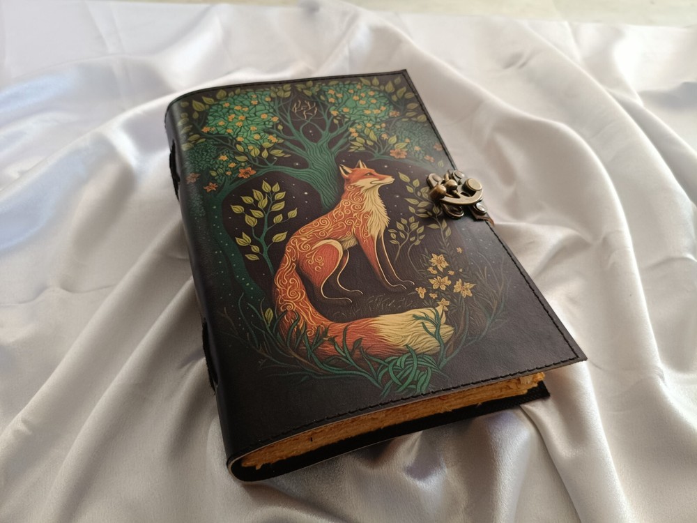 Capture thoughts, dreams, and memories in this handcrafted Fox Printed Leather Journal , a beautiful blend of rustic charm and timeless artistry. Made with genuine leather and adorned with a detailed fox print, this journal is perfect for writing, sketching, journaling, or gifting on special occasions. Key Features: ๐ฆ Elegant Fox Print โ A unique hand-printed fox design adds character and personality. ๐ 200 Deckle Edge Pages โ Premium-quality, unlined paper ideal for writing, drawing, or scrapbooking. ๐ Secure C-Lock Closure โ Keeps the journal neatly closed, adding a vintage touch. ๐งต Handmade Craftsmanship โ Each journal is carefully handcrafted for a truly one-of-a-kind piece. ๐ Perfect for Gifting โ Ideal as a wedding gift, dream journal, travel diary, or personalized keepsake. Available Sizes: 7 x 5 inches โ Compact & travel-friendly 8 x 6 inches โ Great for daily journaling 10 x 7 inches โ Spacious for sketches & notes 13 x 10 inches โ Statement piece for art or memory keeping