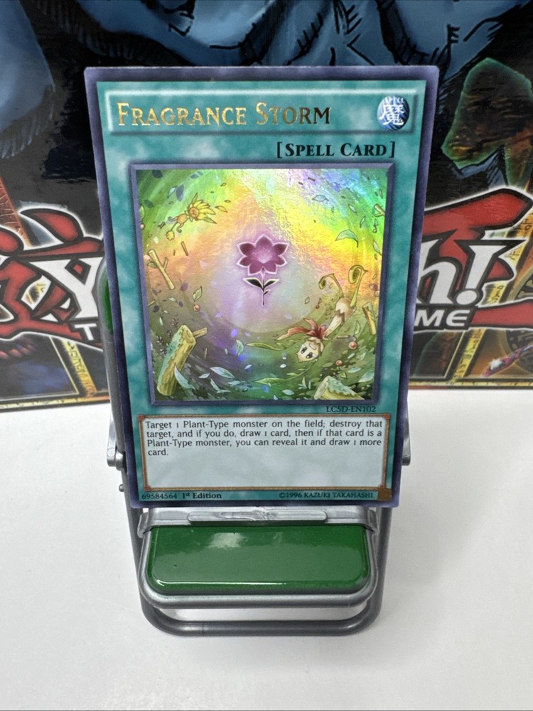 Elevate your Yu-Gi-Oh! TCG collection with the Fragrance Storm card from the Legendary Collection 5D's set. This Ultra Rare, Spell-Normal card is a must-have for players and collectors alike, featuring the sought-after 1st Edition marker. With card number LC5D-EN102, this piece stands out in any deck or display. Crafted by Konami and presented in English, the Fragrance Storm card embodies the strategic depth of the Yu-Gi-Oh! universe. Its attack and defense power of 0 signifies its unique Spell attribute, making it a pivotal addition to your gameplay arsenal or a prized collectible for those who appreciate the art and history of the trading card game.