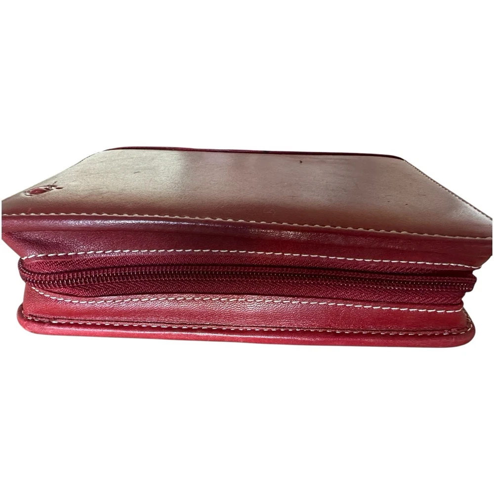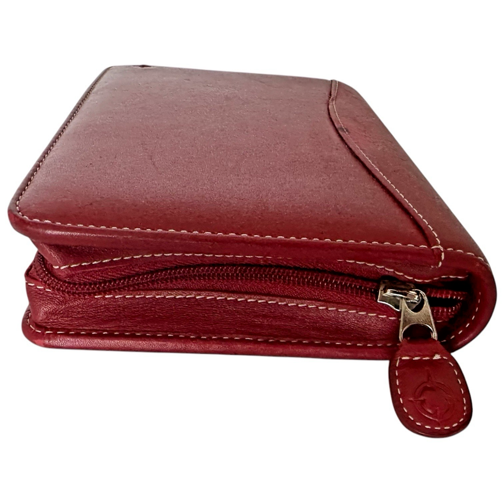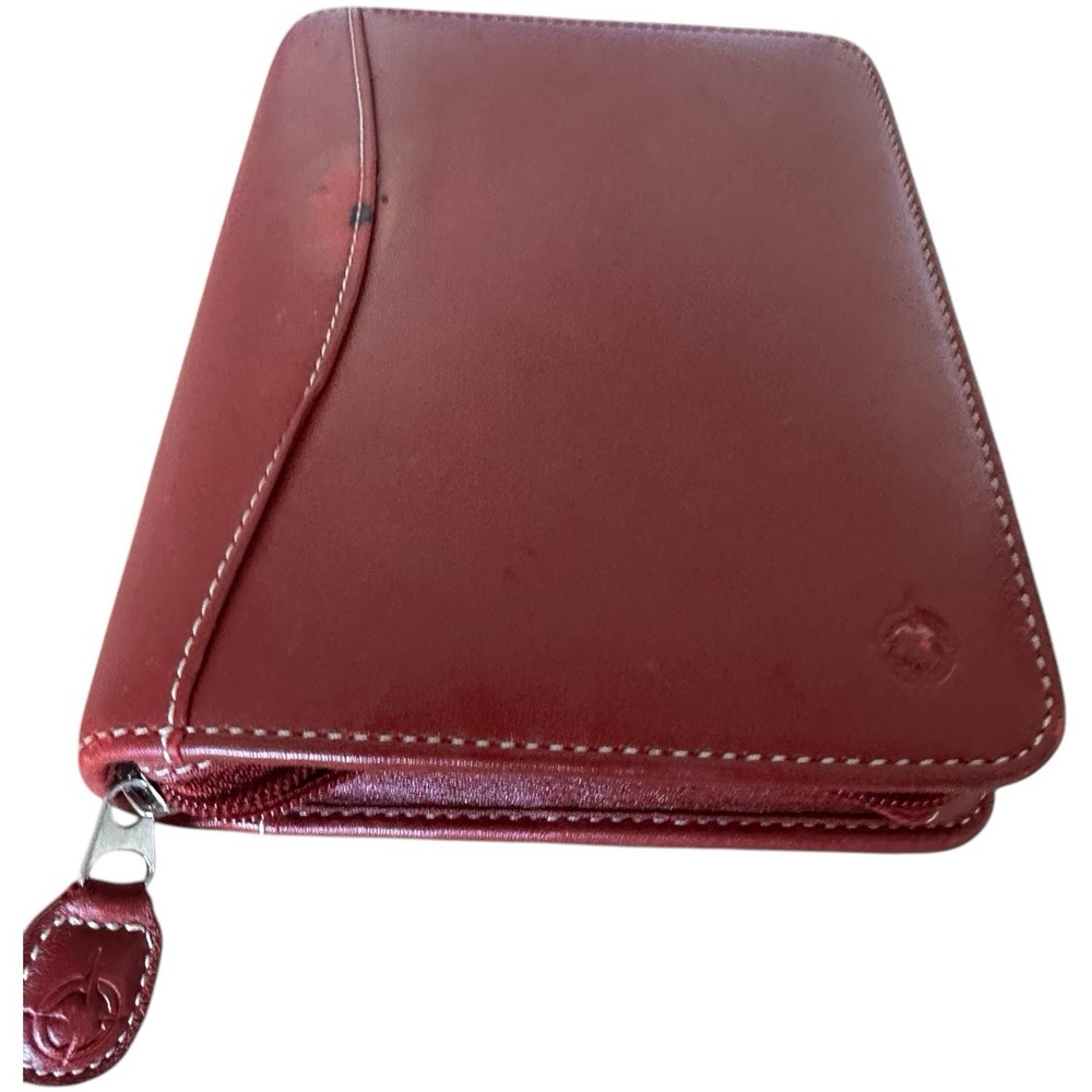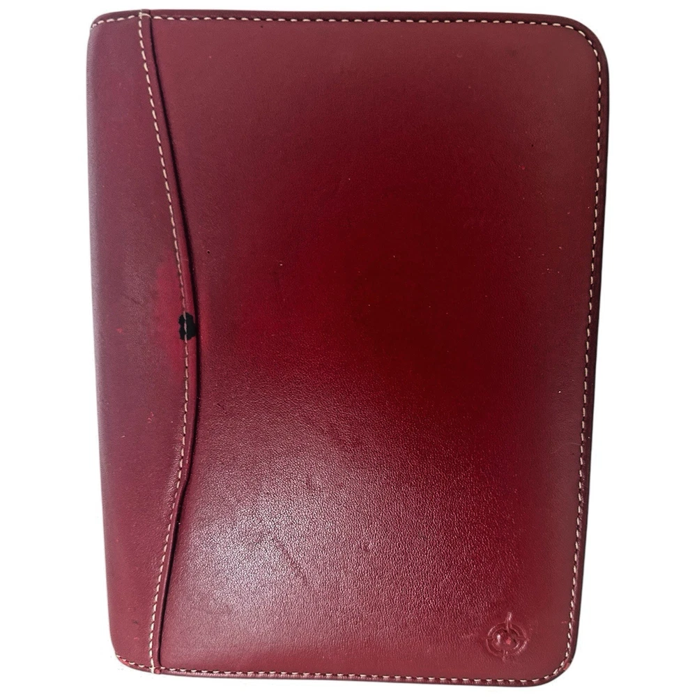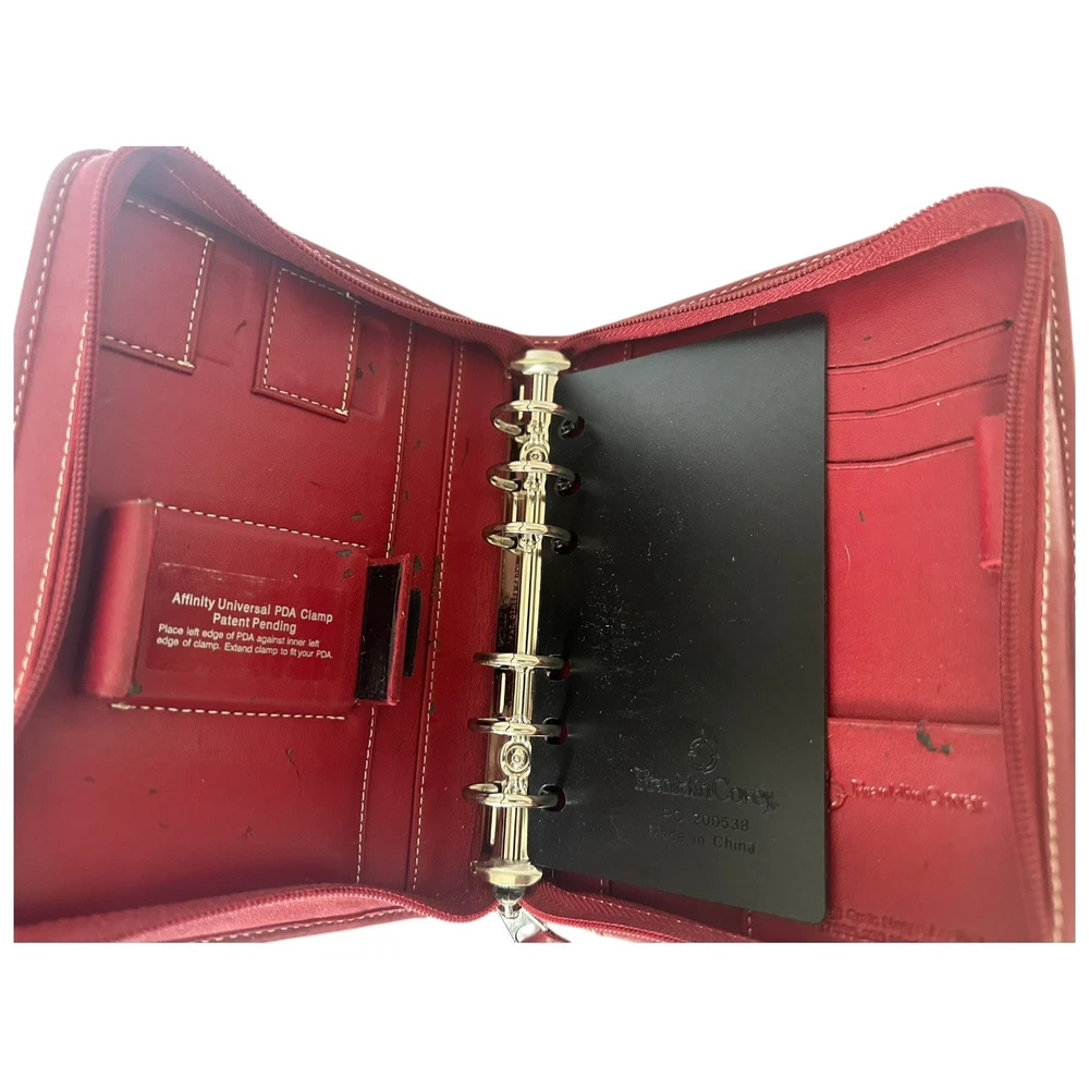 Franklin Covey Planner 6-Ring Red Nappa Leather VINTAGE Cell Phone Holder 5044 Size: 5.5 x 7.5" Holds 6 inch paper Does not include paper inserts Zippier works fully working