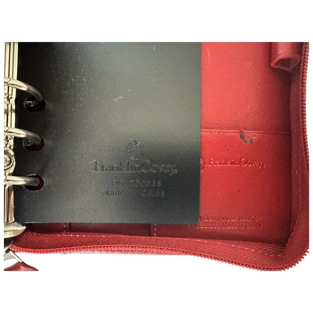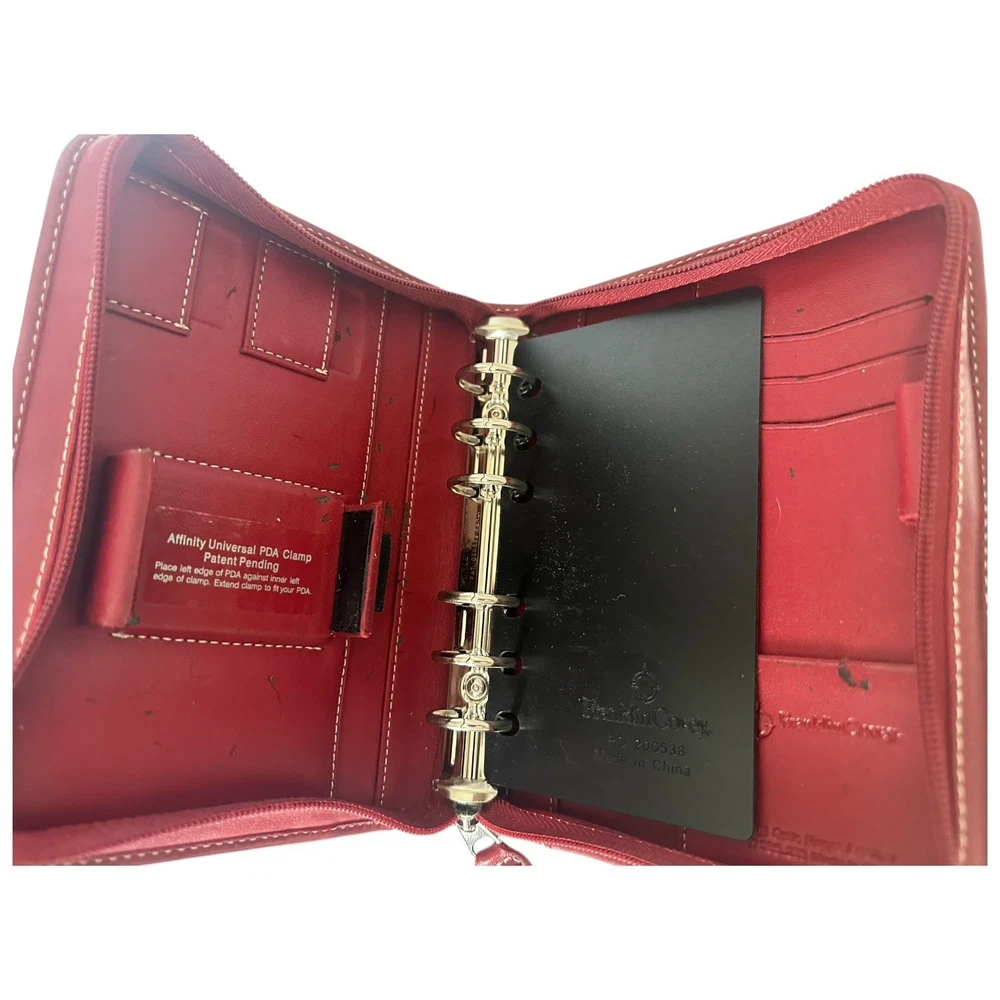 Franklin Covey Planner 6-Ring Red Nappa Leather VINTAGE Cell Phone Holder 5044 Size: 5.5 x 7.5" Holds 6 inch paper Does not include paper inserts Zippier works fully working...