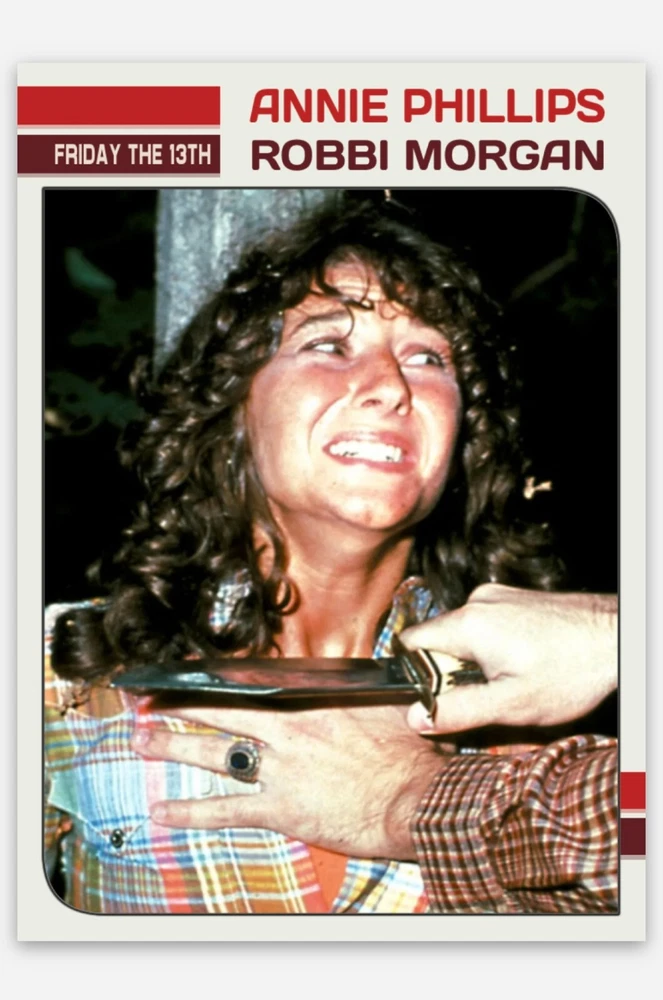 Robbi Morgan - Annie Phillips Friday the 13th (1980) CUSTOM Trading card. This card is part of a 5 card set. Winner pays $4.00 S/H within the US. International is extra. Please check the other listing to see the other cards in the set and AUTOGRAPHED cards for sale.