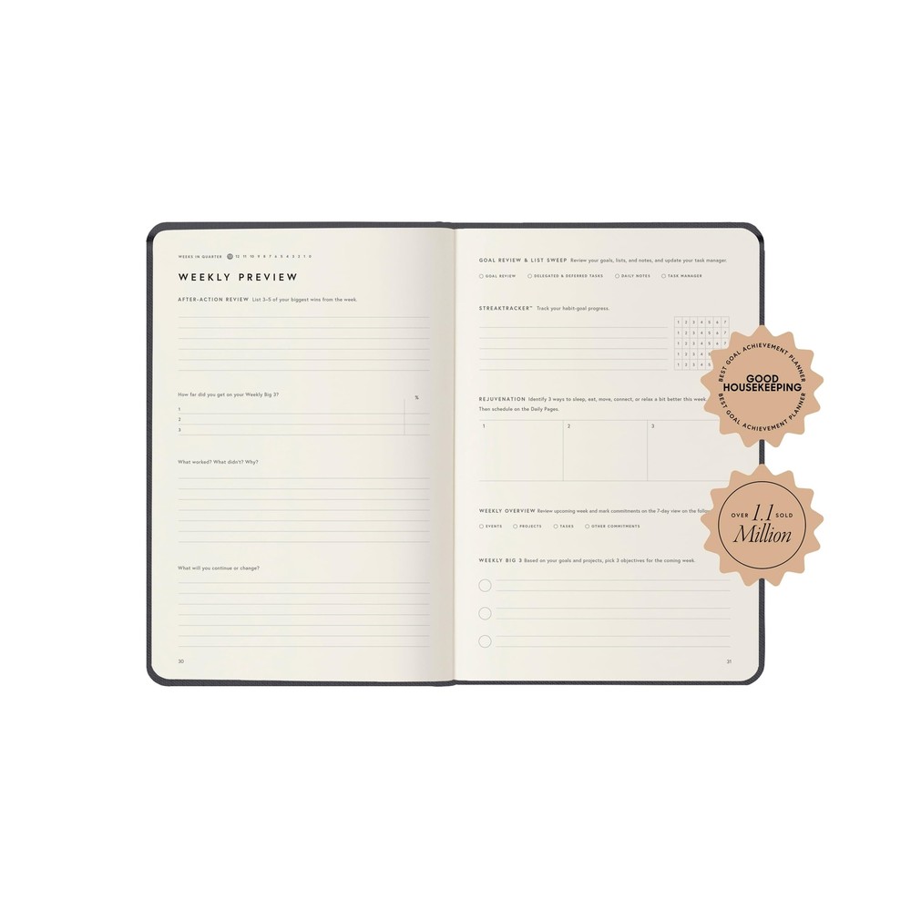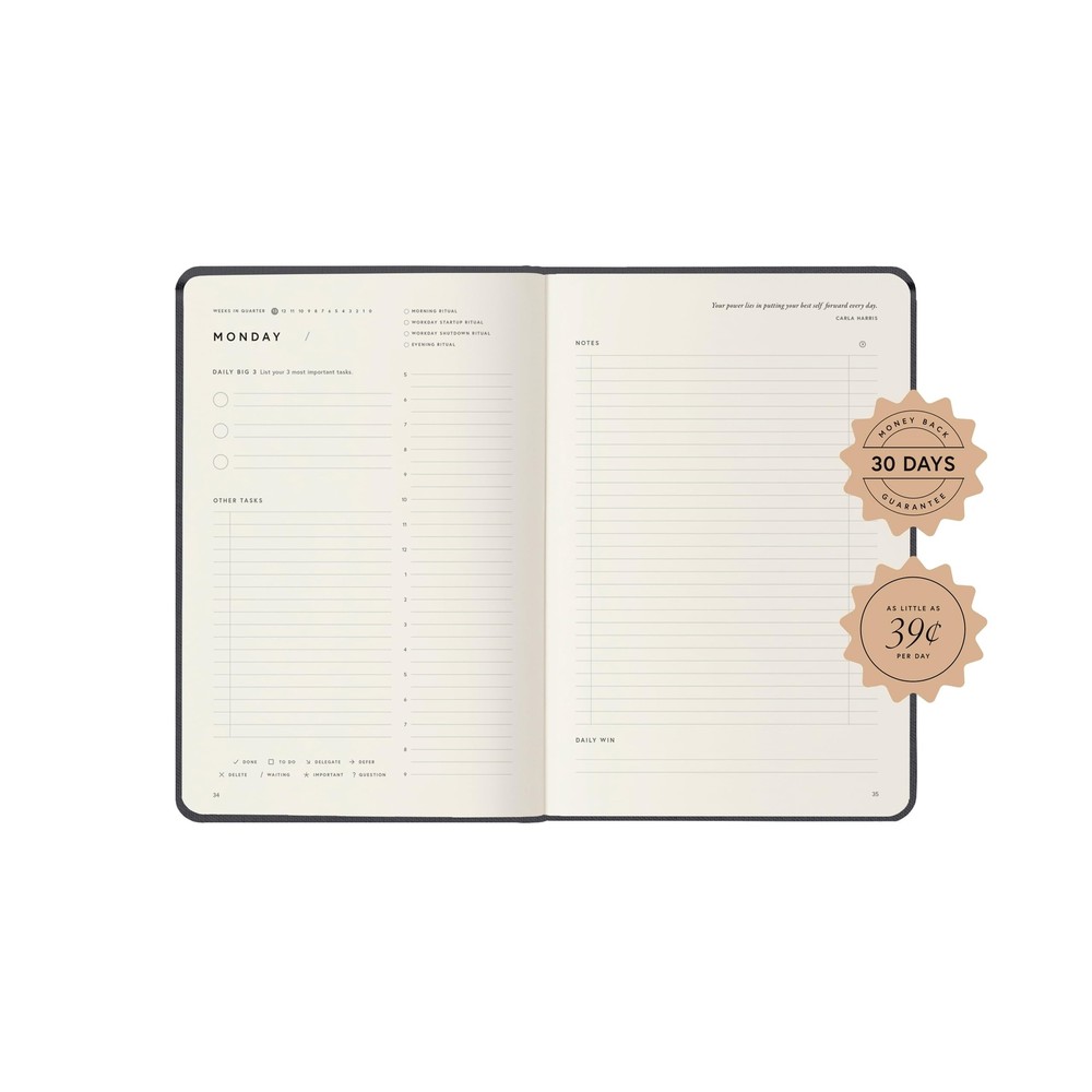 Full Focus Gray Linen Planner by Michael Hyatt - The #1 Daily Planner to Increase Focus, Eliminate Overwhelm, and Achieve Your Biggest Goals - Hardcover Product Details Color: Grey 4.0 Brand: Full Focus MPN: 89690 ISBN: 1732189692 EAN: 9781732189690 UPC: Does not apply Brand: Full Focus Color: Grey 4.0 Cover Material: Linen Year: 2020 Format: Day to Day Calendar Calendar Type: Yearly, Monthly Target Audience: Adult Sheet Size: 6 x 9 inches Material: Linen Item Weight: 608 Grams Manufacturer: Full Focus Brand: Full Focus Item Weight: 1.34 pounds Product Dimensions: 6.25 x 9.25 x 1 inches Item model number: 89690 Color: Grey 4.0 Cover Material: Linen Material Type: Linen Ruling: daily Sheet Size: 6 x 9 inches Manufacturer Part Number: 89690 Date First Available: April 17, 2019 DESIGN YOUR DAYS & ACHIEVE YOUR MOST IMPORTANT GOALS Strategically plan your year and live each day with purpose. Keep your top priorities front and center, ensuring that you focus on what truly matters. This planner is meticulously crafted for high achievers who aspire to lead an intentional and fulfilling life, making daily progress toward their biggest ambitions. PROVEN STRATEGIES FOR ACHIEVING YOUR GOALS Based on the powerful principles from productivity expert Michael Hyatts bestselling courses and training, which have empowered over 100,000 high achievers worldwide. These field-tested strategies are designed to help you focus on your top priorities daily, enabling you to consistently work toward and accomplish your most significant annual goals. TRACK YOUR PROGRESS & STAY FOCUSED Utilize the weekly and quarterly review templates, alongside daily task lists, to seamlessly bridge the gap between your everyday actions and your long-term ambitions. With your priorities consistently in sight, you wont be derailed by lifes daily demands. The Full Focus Planner empowers you to filter through the noise of the urgent and focus on what truly matters, ensuring steady progress toward your most important goals. CONQUER OVERWHELM & BOOST PRODUCTIVITY With our innovative daily framework, you can distinguish your highest-impact activities from your routine tasks. This approach keeps you consistently advancing toward your goals, ensuring that each day contributes to making this year your most productive and successful.