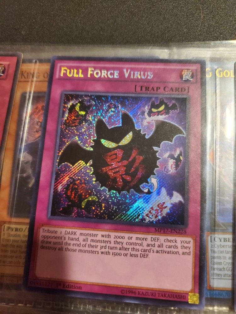 This highly sought-after Full Force Virus card is a must-have for any Yu-Gi-Oh! TCG collector. With its Secret Rare rarity and 1st Edition status, this card is a true gem. The card is in English language and belongs to the 2017 Mega-Tins Mega Pack set, with the card number MP17-EN228. The card is a Trap-Normal type and is manufactured by Konami. It features a unique attribute of Trap, making it a valuable addition to any collection. This card is perfect for fans of the game who are looking to expand their collection with a rare and special edition card. Message me with any questions