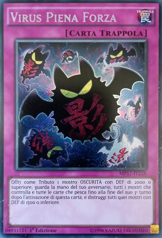 Virus Piena Forza - Rara Segreta 2017 Mega-Tin Mega Pack - MP17-IT228 Ita Nuovo Virus Piena Forza - Rara Segreta 2017 Mega-Tin Mega Pack - MP17-IT228 Ita Nuovo Offri come Tributo 1 mostro OSCURITÀ con DEF di 2000 o superiore; guarda la mano del tuo avversario, tutti i mostri che controlla e tutte le carte che pesca fino alla fine del suo 3° turno dopo l’attivazione di questa carta, e distruggi tutti quei mostri con DEF di 1500 o inferiore. Shipping Shipping cost: Italy Posta 1 -> 2,95 Corriere Espresso -> 5,99 Outside Italy Priority - 8,00 Delivery time: La Spedizione Viene Effettuata entro i 5 giorni successivi al pagamento dell'ordine. Payment Per qualsiasi info contattateci Service Per qualsiasi info contattateci