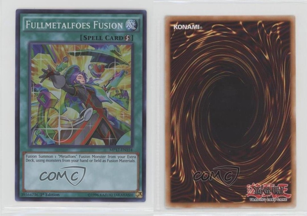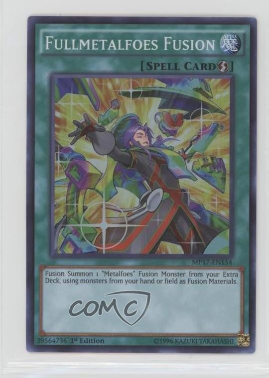 2017 Yu-Gi-Oh! Mega-Tins - Mega Pack [Base] - 1st Edition #MP17-EN154 Fullmetalfoes Fusion COMC Item: 172308563 - YuGiOh Card - Featuring Fullmetalfoes Fusion Search for more: 2017 Yu-Gi-Oh! Mega-Tins Search for more: 2017 Yu-Gi-Oh! Mega-Tins - Mega Pack [Base] - 1st Edition View all of our Listings Auctions Buy It Now About Us Located in the beautiful Pacific Northwest, COMC (Check Out My Cards) is the world's largest consignment service for trading card singles. More than 10,000 people have used our consignment service to list over 50 million trading cards. Find out how we can help you consign your items on eBay by contacting us through eBay messaging. COMC -- "The Safe & Easy Way to Buy & Sell" Raw Condition for Modern Cards Unless otherwise noted, raw modern cards are listed in Near Mint-Mint condition or better. A NM-MT card appears to be Mint at first glance, but upon closer inspection, may exhibit some of the following: minor print defects (e.g. roller marks, print line, dimple), minor scratches, slight edge wear, and slight corner wear. Centering is clearly visible in the images provided and does not factor into our condition assessment. Raw Condition for Vintage Cards Unless otherwise noted, raw vintage cards are listed in Excellent condition or better. An EX card may exhibit some of the following: minor rounding of corners, surface wear, print defects, light scratches, and slight edge wear/chipping. Centering is clearly visible in the images provided and does not factor into our condition assessment. Domestic Shipping Combined shipping for multiple items is available. To receive combined shipping, please ensure all desired items are in your eBay shopping cart before proceeding to checkout. eBay limits orders to 40 items per order. We automatically combine multiple orders placed on the same day. If you place multiple orders on the same day, please contact us to request a refund of applicable shipping costs. Signature confirmation may be required on invoices over $400. All cards are protected and shipped securely. International Shipping COMC offers eBay's International Shipping (EIS) for international orders under $2,500* (see country exceptions below). All duties and import fees are paid at checkout; in the rare event that there are additional import fees upon delivery, these are borne by the buyer. EIS packages route through a shipping hub in Erlanger, KY before shipping to their final destination. Please note that EIS does not allow for combined shipments. The shipping rates are determined by eBay and cannot be adjusted. *Maximum sale price exceptions: Colombia, Kuwait ($2,000); Taiwan ($1,539); Chile, Costa Rica, Guatemala, Honduras, Trinidad and Tobago ($1,000); Antigua and Barbuda, Aruba, Belize, Dominica, Grenada, Philippines, Saint Kitts and Nevis, Saint Lucia, Montserrat, Turks and Caicos Islands ($500); Dominican Republic, El Salvador ($200). Please request a shipping quote through eBay messaging for orders that exceed the maximum sale price supported by eBay's International Shipping. You will be responsible for all duties and import fees for international orders shipped outside the EIS. All cards are protected and shipped securely. Payment COMC does not accept offers on our cards through our eBay storefront. COMC utilizes eBay’s managed payments system. If you are experiencing difficulties making a payment, please contact eBay for assistance. Return Policy Returns are only accepted on the rare occasion the item is not as described. If you are making a return, please initiate the return process through eBay so a mailing label can be provided for you. Prior to listing, our expert team carefully assessed this item to represent it accurately. Please review the description and high-definition images prior to purchasing to ensure this item meets your satisfaction. We welcome you to contact us if you have further questions about this item. Trust and Integrity COMC carefully assesses each item consigned to us to prevent fraudulent items from entering the marketplace. If you believe an item offered on COMC may be fraudulent, please contact us with details so we can investigate the issue. Items we determine are outside our supported items policy may be removed. Last Modified: 6/3/2025 5:31:18 AM PDT