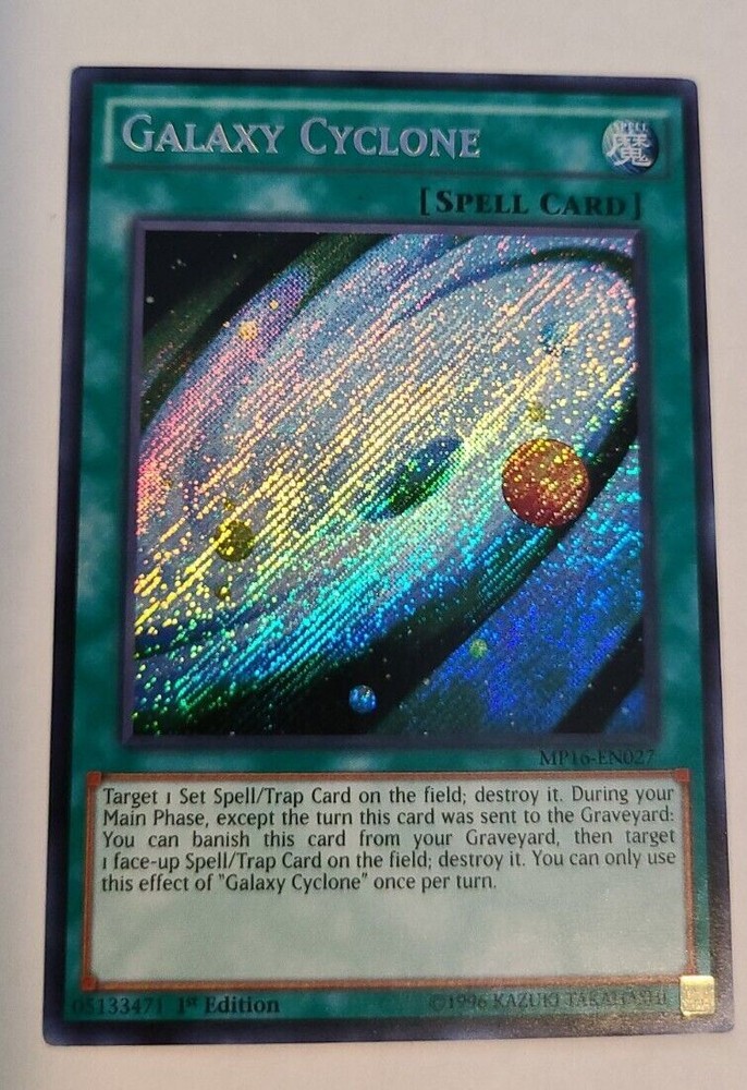 You are bidding on : 1 x Yu-Gi-Oh GALAXY CYCLONE (Secret Rare - 1st Edition) MP16-EN027 In stock and ready to ship All cards are in Near Mint condition unless specified Pictures are stock pictures ONLY it is not of the actual card How we identify the condition of the card: Near Mint: Most of the time cards in this condition are pack fresh but, the card may have minor flaws that are not visible with a quick inspection, small white dots or scratches that you have to closely examine the card to see. Excellent: Overall the card looks near mint but may have minor scratches, slightly worn edges that are visible but they do not interfere with the way the card looks. Lightly Played: Similar to a card in excellent condition except there is more whitening around the edges and the corners are a little more worn or slight bends or creases that are visible. There might be some slight whitening on the back or front of the card. Imperfections will be visible with a quick inspection. When the card is sleeved the imperfections will not be noticeable and the card will look just like the rest of your cards Played: There is a large amount of whitening around the edges and the corners have a good amount of damage, many scratches, bends and/or creases on the card. When the card is sleeved it can still be played Shipping and Handling : Canada Shipping is $1.75 CAD Tracking is offered for $13 CAD BUT tracking is required on any purchases that are over $50 CAD Please contact us for combined shipping if interested in purchasing multiple cards before paying USA Shipping is $2.50 CAD Regular Mail for all orders under $19.99 Shipping is $7.99 CAD with tracking for all orders $19.99 and over Please contact us for combined shipping if interested in purchasing multiple cards before paying INTERNATIONAL Shipping is $5.99 CAD with regular mail Tracking is offered for $29.99 CAD BUT tracking is required for purchases over $50 CAD Please contact us for combined shipping if interested in purchasing multiple cards before you pay Combined shipping: We offer combined shipping: each and every additional item after the first one is only $0.25 (25 cents). To obtain combined shipping fees, please use the shopping cart or ask for the combined shipping invoice BEFORE you pay. If you pay item-by-item, right away after the purchase, we will not be able to offer you combined shipping anymore. Handling Your order will be shipped 1-3 business days after payment has been received *“Business days” are normal weekdays. Saturdays, Sundays, and major holidays do not count as business days. Cards purchased are packaged and shipped in a sleeve, toploaders, a team bag and an envelope to ensure protection of cards Payment : We accept payment via PayPal only. Payments should be made within 5 days after purchase Epic Cards and Games Any questions feel free to email us and allow 1 day for a response. Thanks for looking! Sales Tax (Canada Only) : Purchases made by Canadian residents are subject to applicable GST/HST, depending on your province/territory. (If you do not agree to this, please do not bid. We have a registered business in Canada and are required by law to charge taxes to anything shipped within the country.) Thank you for shopping with Epic Cards and Games
