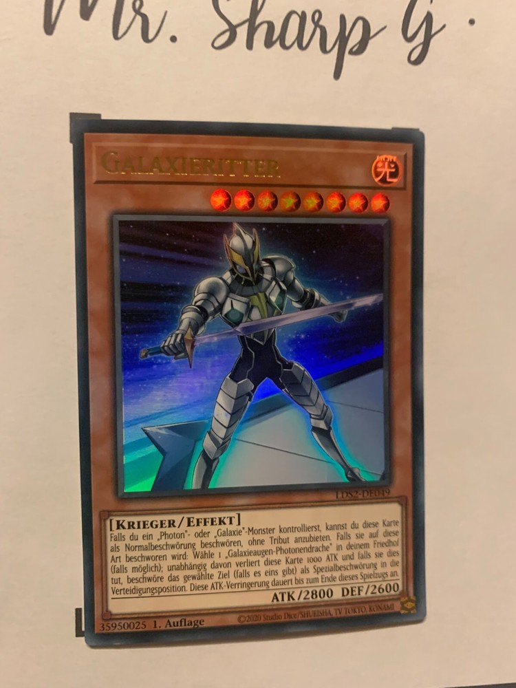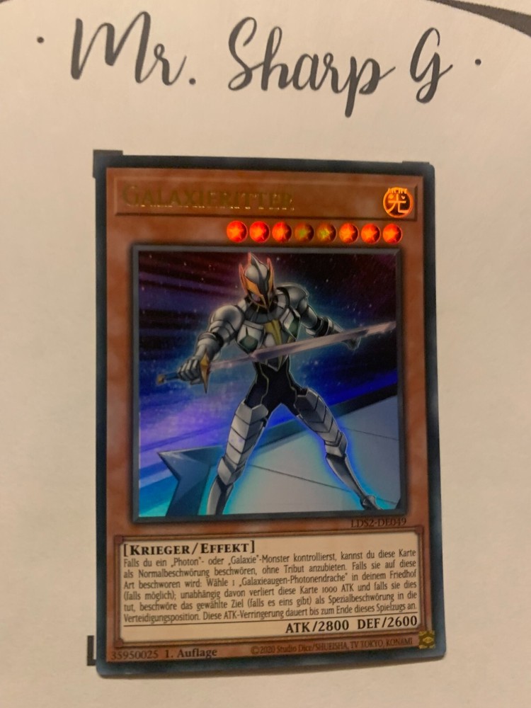 - Mr. Sharp G - - Online Store - TRADING CARDS-TCG-COLLECTION-SETS-TOURNAMENT-Yu Gi Oh! Konami * * * GALAXIERITTER - 1. AUFLAGE LDS2-DE049 - Bitte schauen Sie sich die beigefügten Bilder an, um einen vollständigen Überblick über den Zustand jedes Artikels zu erhalten. - Zustand des Artikels: Neu* - in einem neuwertigem Zustand. (* Neuer Zustand - kann aber leichte Mängel wie 'whitening', leichte Eindrücke, Dellen u.a. haben - die von der Herstellung der Karte aus Produktion stammen, bitte den Bildern und in der Beschreibung den Zustand entgegennehmen) - Typ/ Serie: KRIEGER/ EFFEKT / 1. AUFLAGE LDS2-DE049 - Seltenheitsstufe/ Rarity: ULTRA RARE - Edition : LEGENDARY DUELISTS: SEASON 2 / 2021 / GERMAN * * * + Kartenschutzhülle & Toploader inklusiver im Preis + mehrfache Bestellung = einmalige Versandkosten + versicherter Versand Bestellung in Höhe - v. 8,50EUR in Deutschland/ Inland - v. 12,50EUR im Ausland/ International + Großbestellungen kostenloser Versand Inland und International - Bei Fragen, Details, nicht im Bestand gewünschte Karten/ Artikel oder Versandgutschriften schreiben Sie uns! Wir freuen uns auf Ihre Nachricht! - Vielen Dank für Ihr Vertrauen, Unterstützung und Besuch in unserem Store ! - Ihr Mr. Sharp G Team