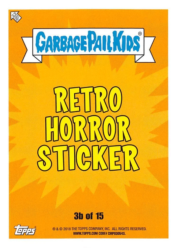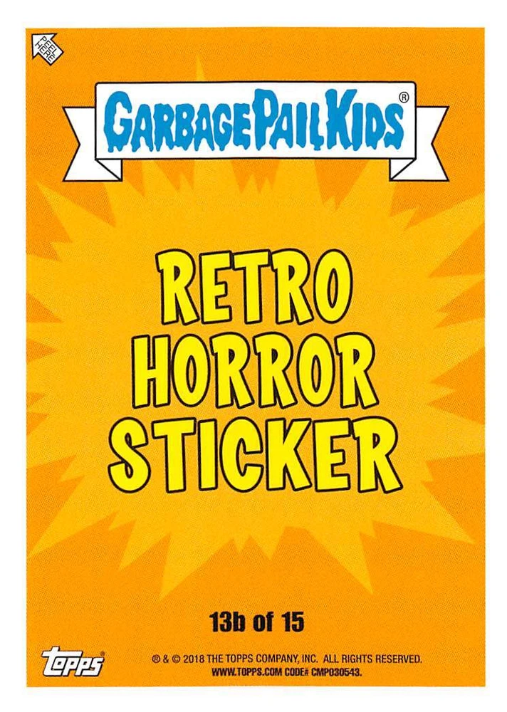 This listing is for your choice of any available 2018 Topps Garbage Pail Kids "Oh, The Horror-ible" base card from the drop-down menu above . Photos show front and backside of each card, be sure to scroll sideways to view front and backside photos! Check out my other listings for more single parallels from this same set. Any questions? Please ask before buying. International "USPS First Class Mail" will not include a tracking number for this item, if you would like a tracking number please choose the "eBay International Standard Shipping" option when you check out. As with all of my "pick-a-card" listings, I will be shipping with "eBay Standard Envelope". The rules of this envelope state that it cannot be too thick, so please expect your order to be packaged as follows: 1 to 6 cards will be slid into a single sleeve, the sleeve will then be slid inside of a semi-rigid Card-Saver. 6 to 12 cards will be slid into a double sleeve, 13 to 18 cards into a triple sleeve, 19 to 24 cards into a quadruple sleeve(up to six cards per sleeve). The double, triple and quadruple sleeve shipping will not have the Card-Saver. If you buy more than 1 card and want it packaged with more than 1 Card-Saver(or 1 sleeve per card), I kindly ask that you contact me before purchasing to be sure that this is possible to have it done with the stated shipping charge, or if additional shipping would be required. If you do not contact me, then you can expect to receive your order packaged as I have explained here. Please do not expect rigid top-loaders to be included, I don't normally keep a lot of them in stock, but if you message me prior to ordering I will be able to see if I have any that can be included with your order - additional shipping may be required. In order to get free combined shipping from this and any of my other "pick-a-card" listings, you must add all of your cards to the cart and check out when you are done shopping. If you do not use the cart you will be overpaying on shipping and I cannot refund you on over-payed shipping. So please use the cart and get your FREE COMBINED SHIPPING!