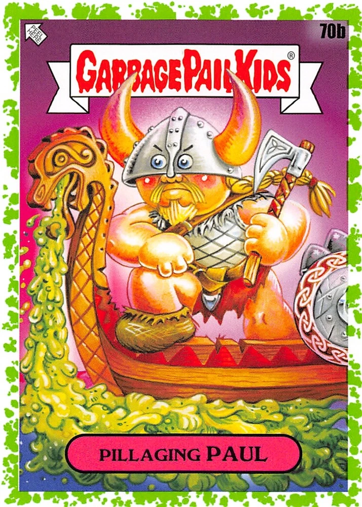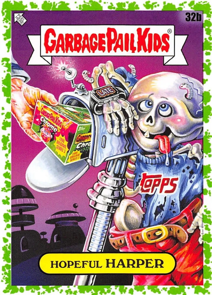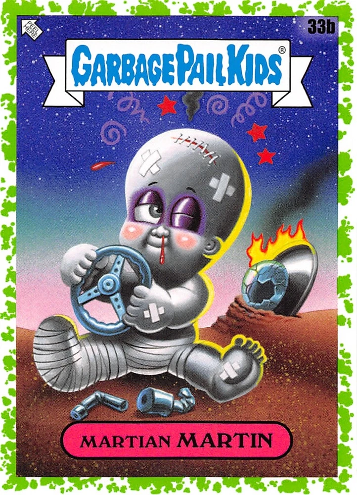 Absolutely love these Garbage Pail Kids green parallels! The 35th Anniversary set is a must-have for collectors, and the vibrant green border makes each card pop. The seller provides clear photos of both sides, making it easy to pick your favorite. Fast shipping and great communication—highly recommend grabbing one before they're gone!
