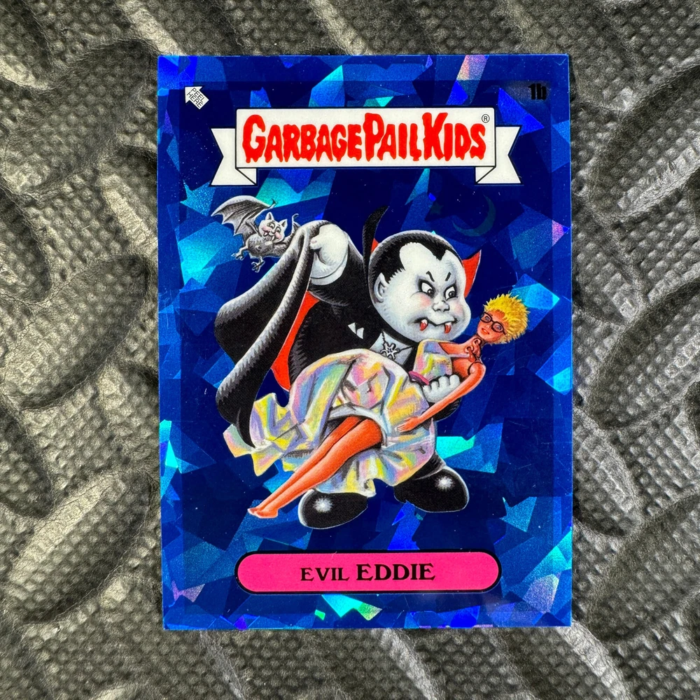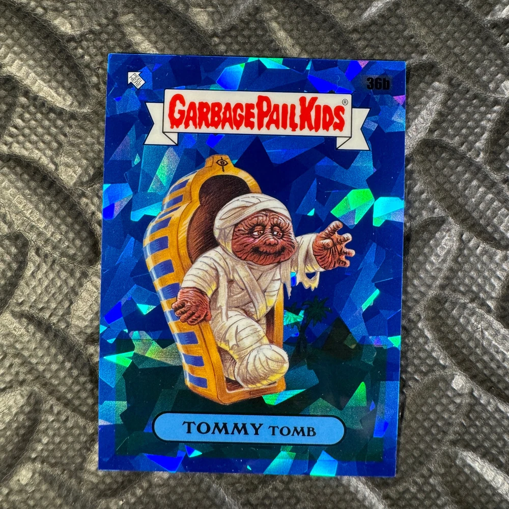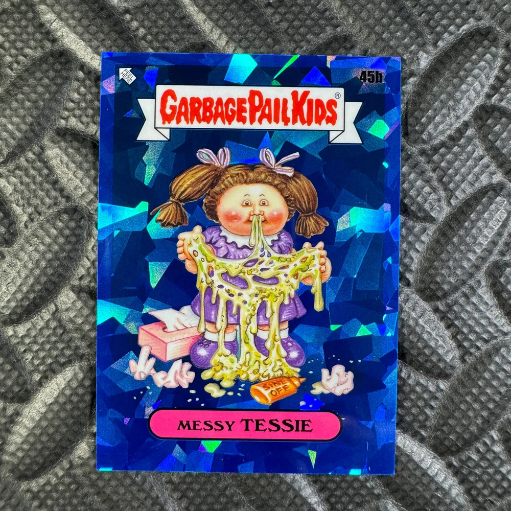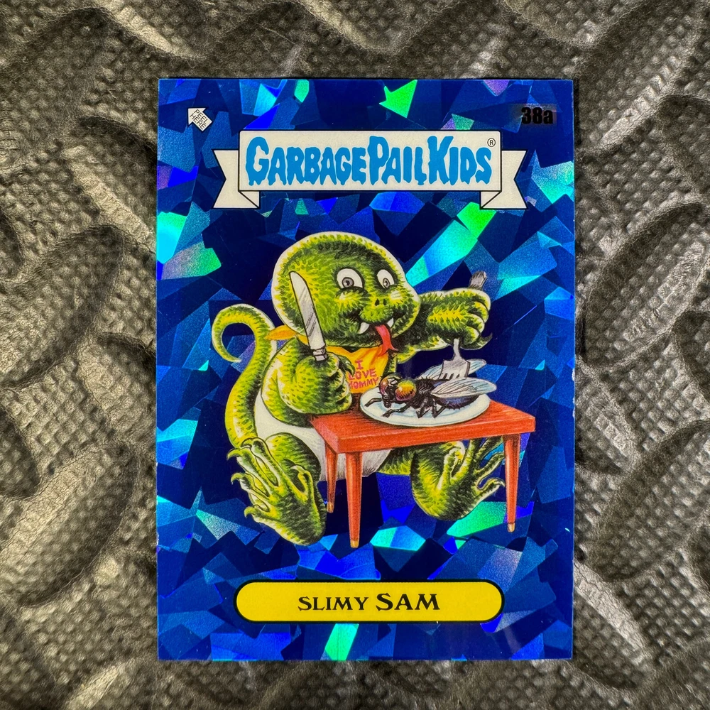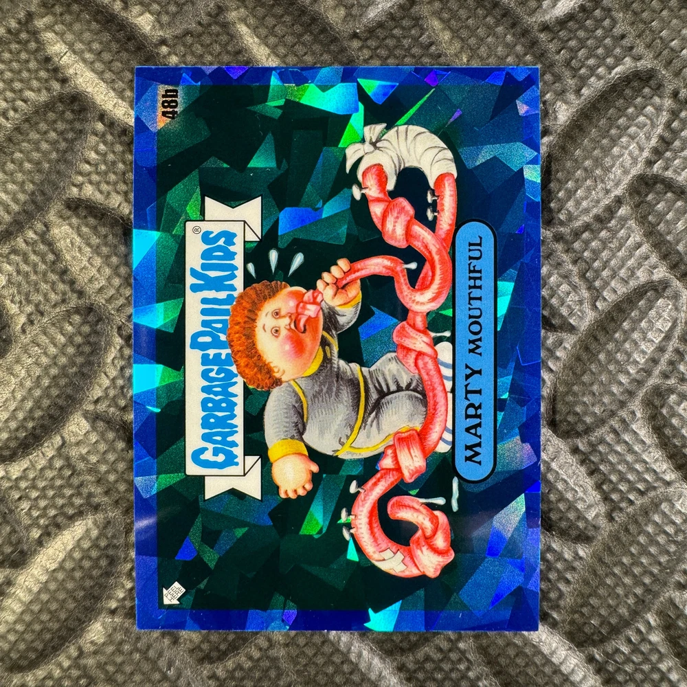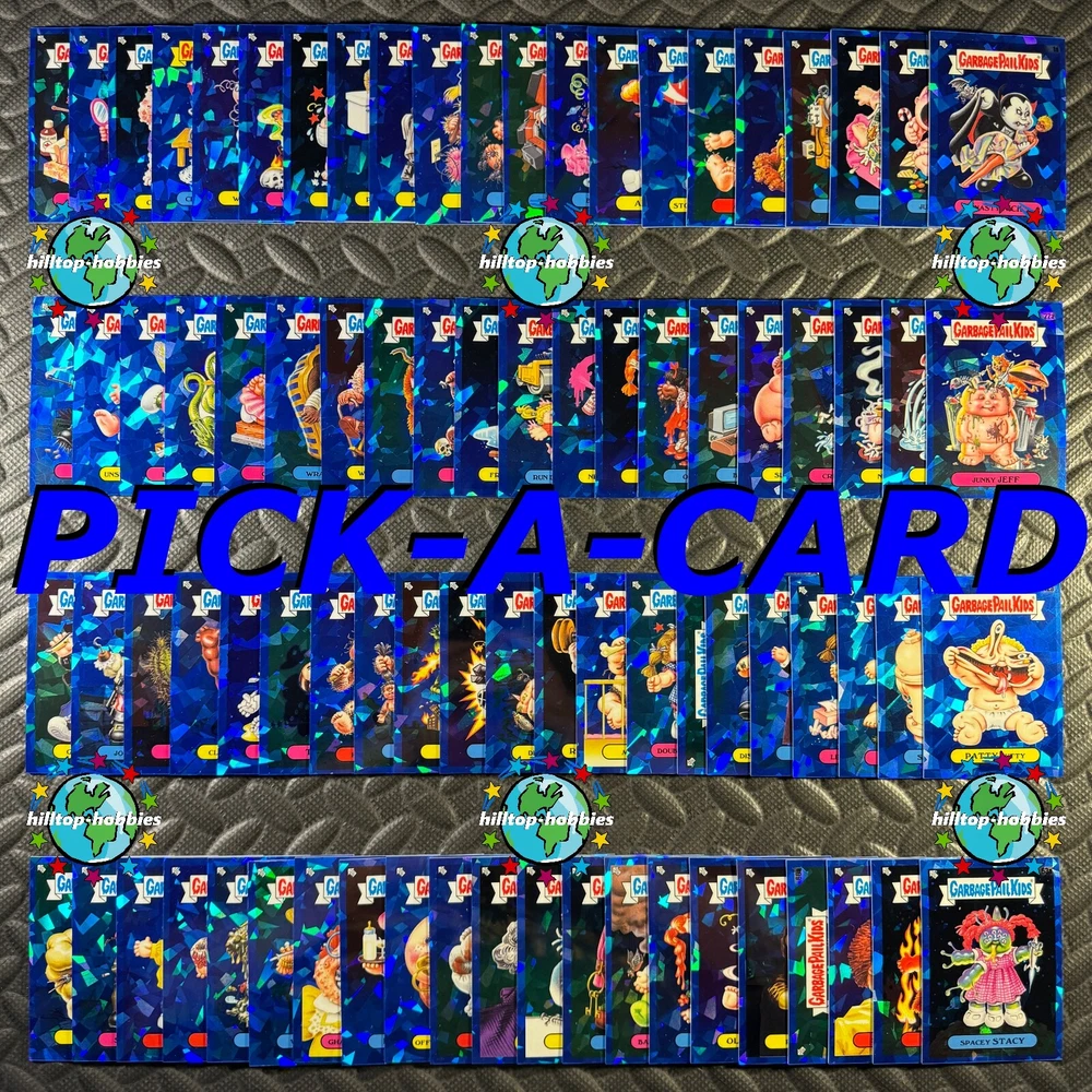 This listing is for your choice of any available 2020 Topps Garbage Pail Kids "Sapphire Edition Series 1" base card from the drop-down menu above. Photos show front and backside of each card, be sure to scroll sideways to view front and backside photos! The photos that you see, represent the card that you are buying, it is NOT particularly the card that you are buying! It would be a HUGE job to upload a new photo after every sale, so please look at these photos as "stock" photos. If you want a card with better centering, I can pick one, but I am not going to search out a dead-centered card for you. That being said, if you need a well-centered card, please put a note in when you check out. If it does not matter, then just check out and you will get the luck of the draw, as I normally pull singles at random. Any questions? Please ask before buying. International "USPS First Class Mail" will not include a tracking number for this item, if you would like a tracking number please choose the "eBay International Standard Shipping" option when you check out. As with all of my "pick-a-card" listings, I will be shipping with "eBay Standard Envelope". The rules of this envelope state that it cannot be too thick, so please expect your order to be packaged as follows: 1 to 6 cards will be slid into a single sleeve, the sleeve will then be slid inside of a semi-rigid Card-Saver. 7 to 12 cards will be slid into a double sleeve, 13 to 18 cards into a triple sleeve, 19 to 24 cards into a quadruple sleeve(up to six cards per sleeve). The double, triple and quadruple sleeve shipping will not have the Card-Saver. If you buy more than 1 card and want it packaged with more than 1 Card-Saver(or 1 sleeve per card), I kindly ask that you contact me before purchasing to be sure that this is possible to have it done with the stated shipping charge, or if additional shipping would be required. If you do not contact me, then you can expect to receive your order packaged as I have explained here. Please do not expect rigid top-loaders to be included, I don't normally keep a lot of them in stock, but if you message me prior to ordering I will be able to see if I have any that can be included with your order - additional shipping may be required. In order to get free combined shipping from this and any of my other "pick-a-card" listings, you must add all of your cards to the cart and check out when you are done shopping. If you do not use the cart you will be overpaying on shipping and I cannot refund you on over-payed shipping. So please use the cart and get your FREE COMBINED SHIPPING!