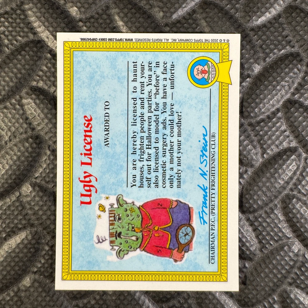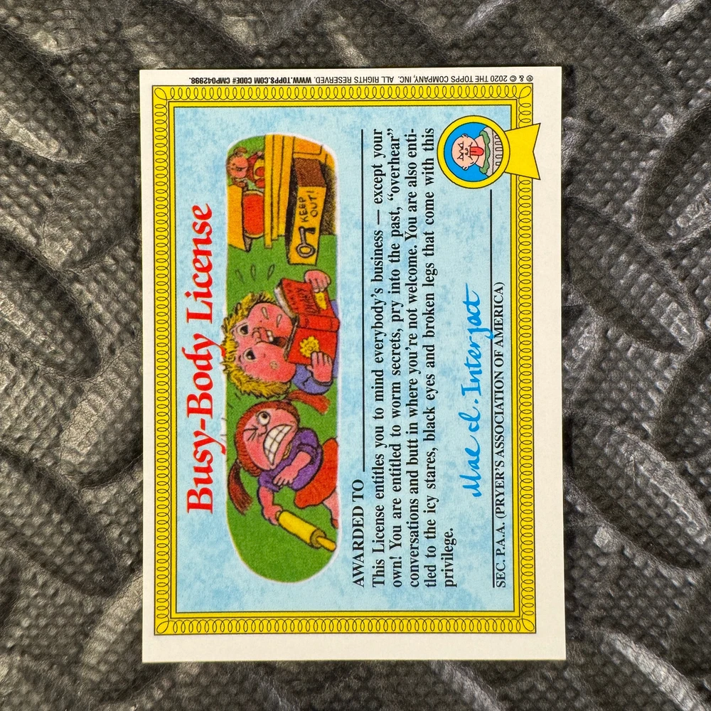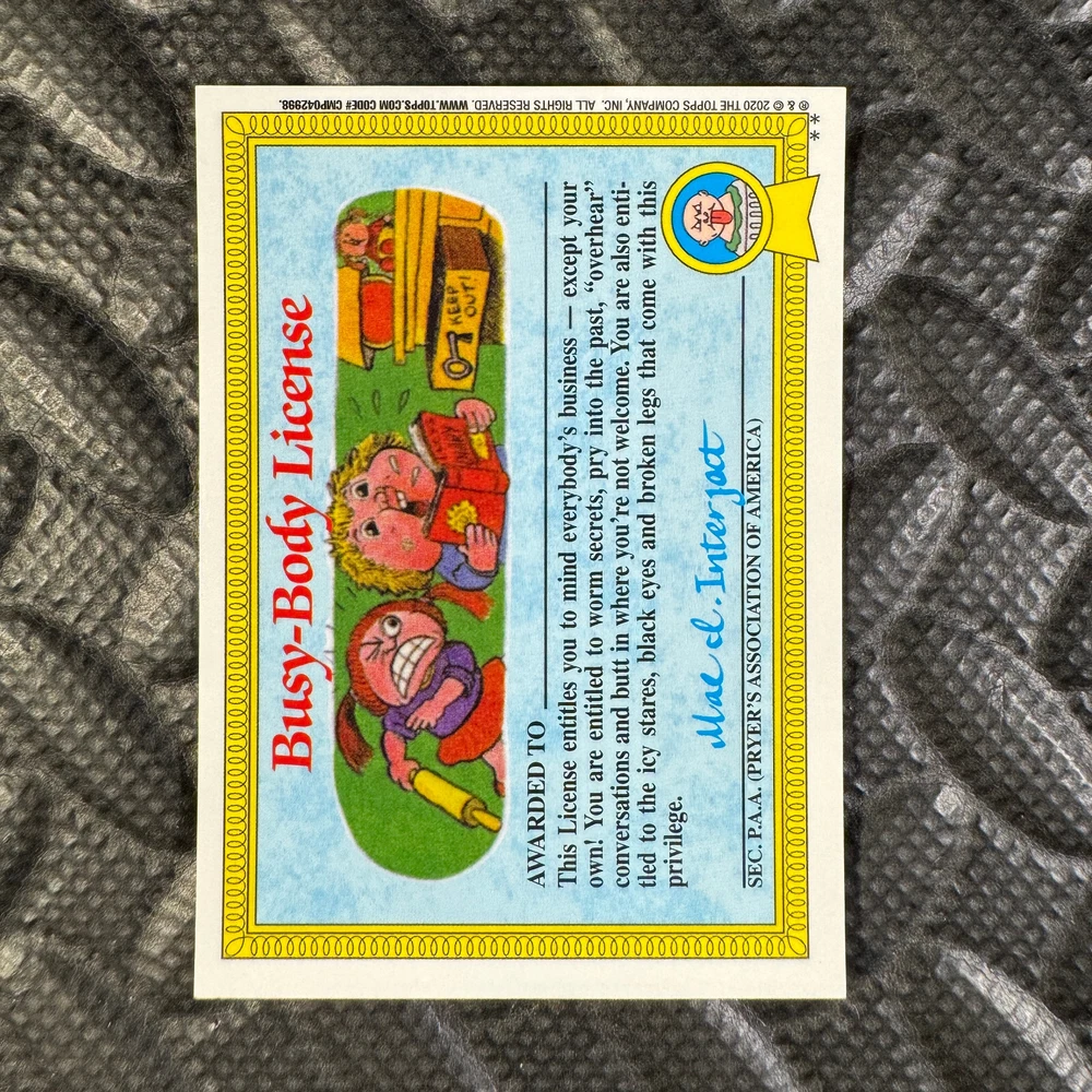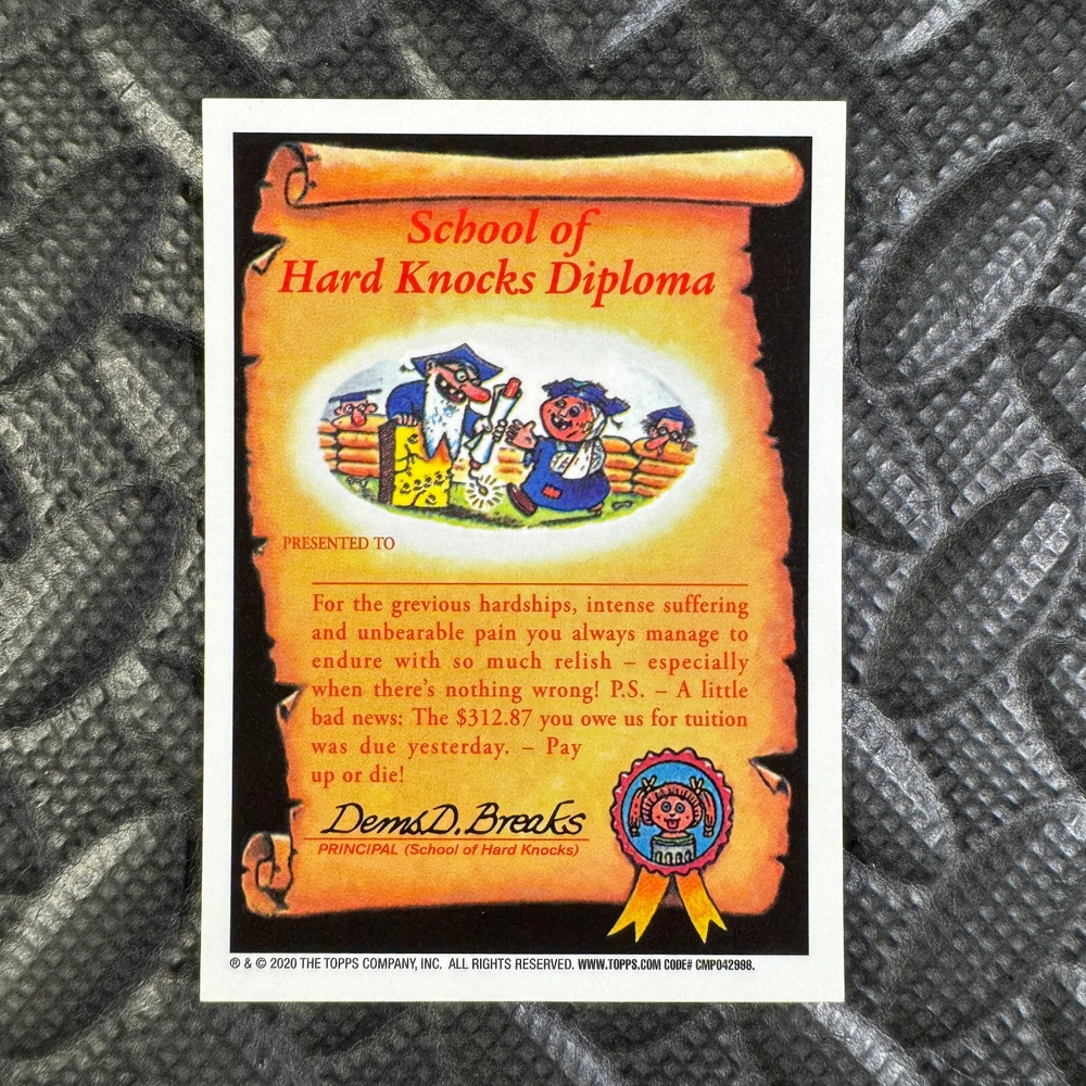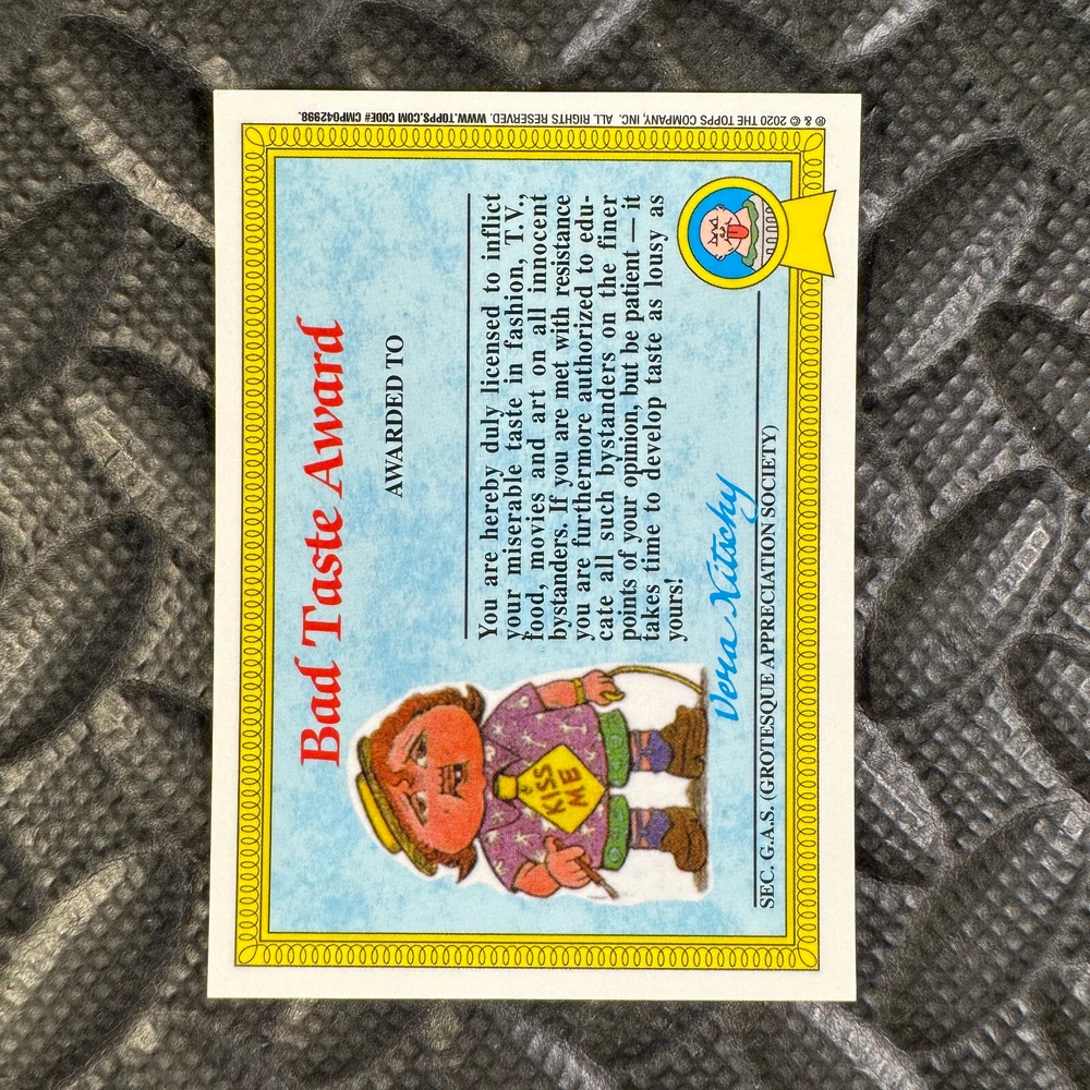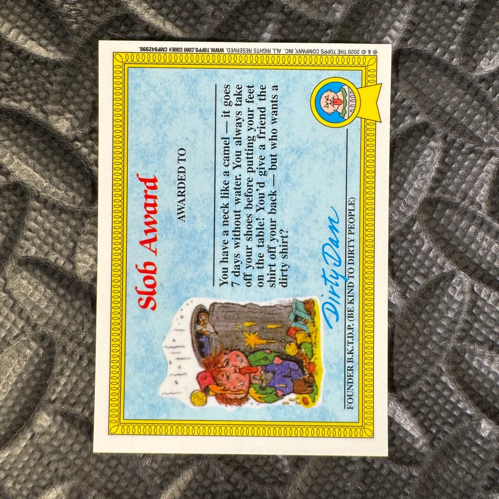 This listing is for your choice of any available 2020 Topps Garbage Pail Kids "Sapphire Edition Series 1" base card from the drop-down menu above. Photos show front and backside of each card, be sure to scroll sideways to view front and backside photos! The photos that you see, represent the card that you are buying, it is NOT particularly the card that you are buying! It would be a HUGE job to upload a new photo after every sale, so please look at these photos as "stock" photos. If you want a card with better centering, I can pick one, but I am not going to search out a dead-centered card for you. That being said, if you need a well-centered card, please put a note in when you check out. If it does not matter, then just check out and you will get the luck of the draw, as I normally pull singles at random. Any questions? Please ask before buying. International "USPS First Class Mail" will not include a tracking number for this item, if you would like a tracking number please choose the "eBay International Standard Shipping" option when you check out. As with all of my "pick-a-card" listings, I will be shipping with "eBay Standard Envelope". The rules of this envelope state that it cannot be too thick, so please expect your order to be packaged as follows: 1 to 6 cards will be slid into a single sleeve, the sleeve will then be slid inside of a semi-rigid Card-Saver. 7 to 12 cards will be slid into a double sleeve, 13 to 18 cards into a triple sleeve, 19 to 24 cards into a quadruple sleeve(up to six cards per sleeve). The double, triple and quadruple sleeve shipping will not have the Card-Saver. If you buy more than 1 card and want it packaged with more than 1 Card-Saver(or 1 sleeve per card), I kindly ask that you contact me before purchasing to be sure that this is possible to have it done with the stated shipping charge, or if additional shipping would be required. If you do not contact me, then you can expect to receive your order packaged as I have explained here. Please do not expect rigid top-loaders to be included, I don't normally keep a lot of them in stock, but if you message me prior to ordering I will be able to see if I have any that can be included with your order - additional shipping may be required. In order to get free combined shipping from this and any of my other "pick-a-card" listings, you must add all of your cards to the cart and check out when you are done shopping. If you do not use the cart you will be overpaying on shipping and I cannot refund you on over-payed shipping. So please use the cart and get your FREE COMBINED SHIPPING!