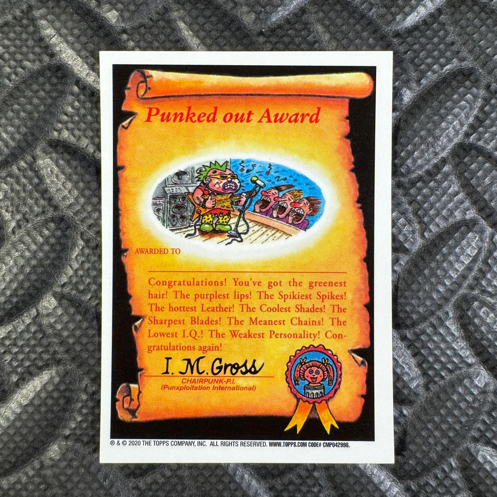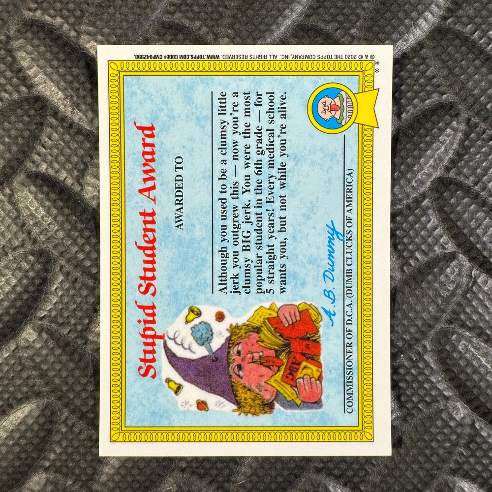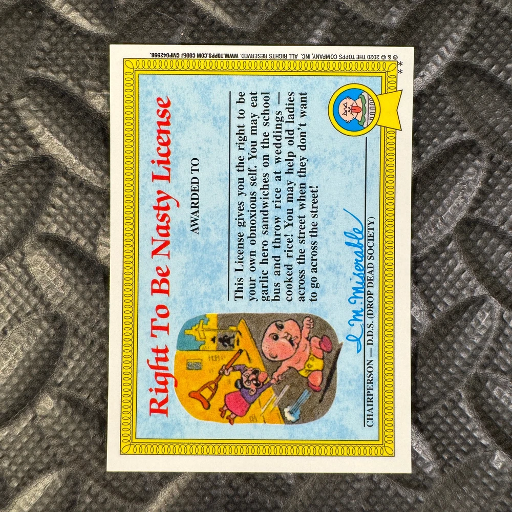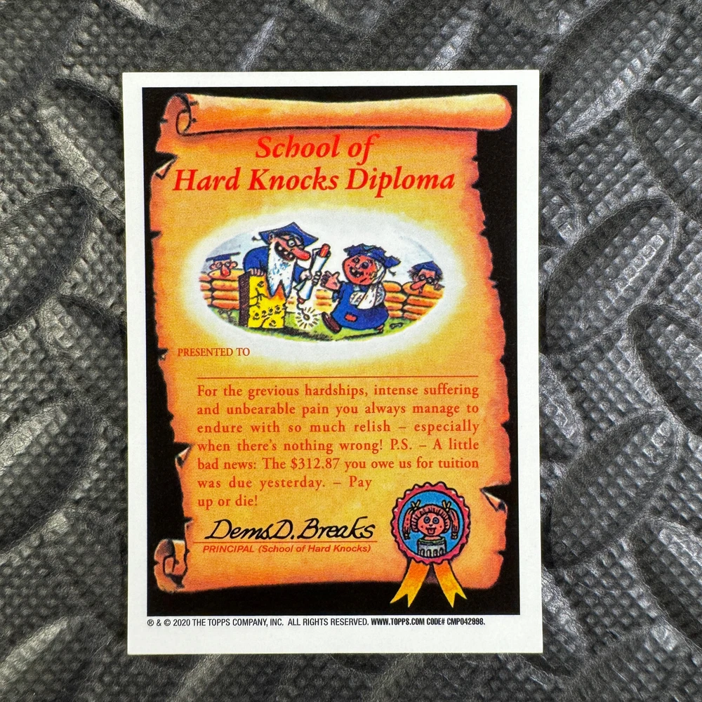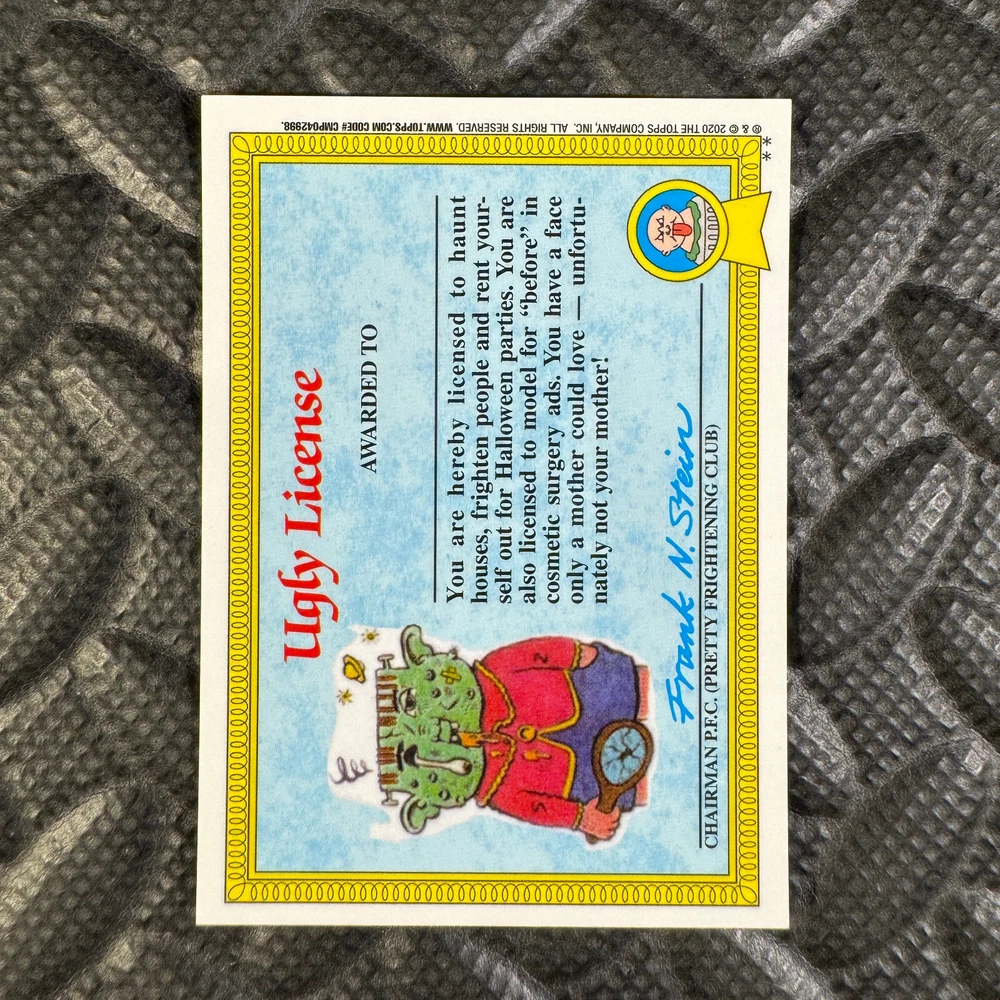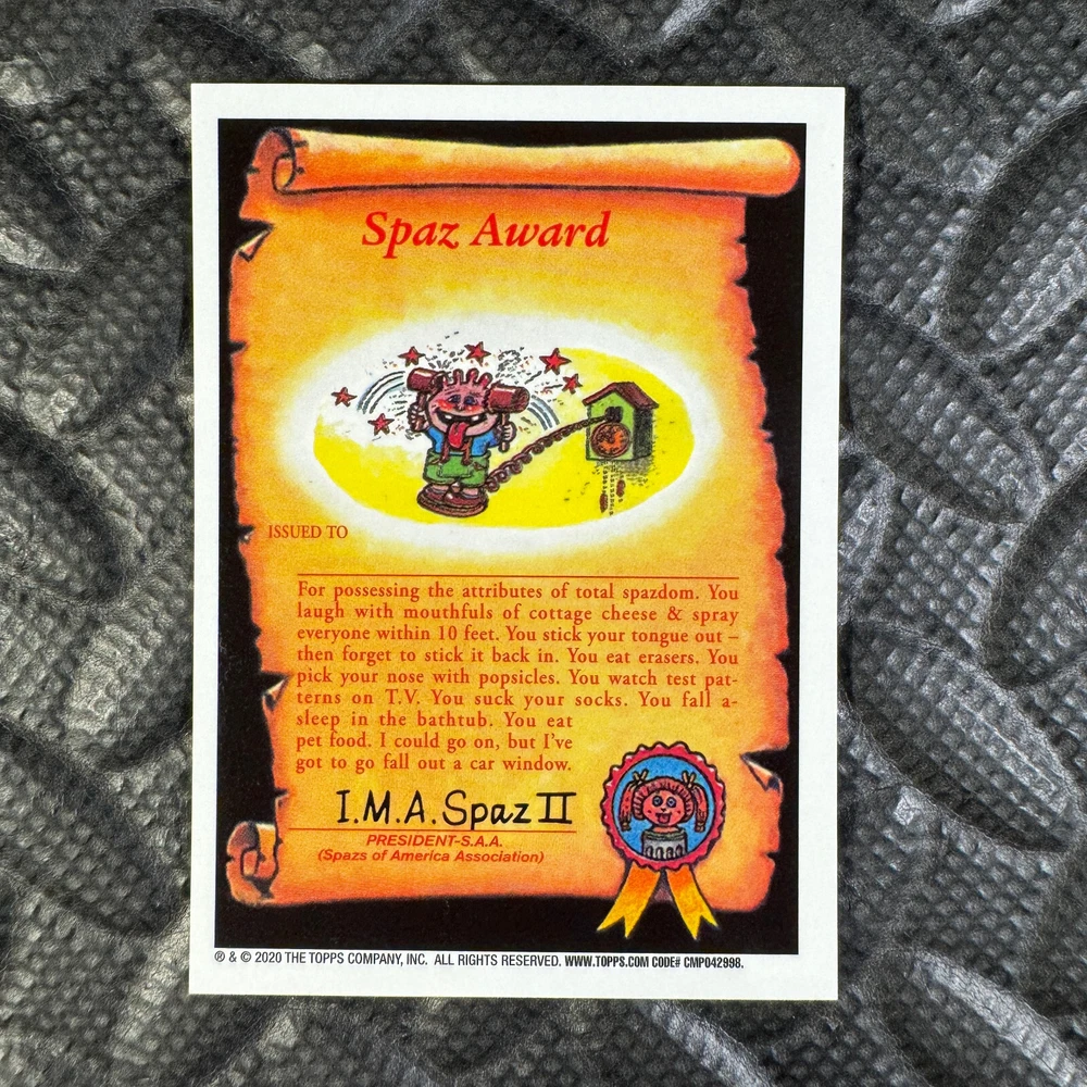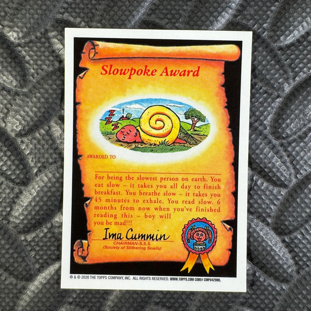 This listing is for your choice of any available 2020 Topps Garbage Pail Kids "Sapphire Edition Series 1" base card from the drop-down menu above. Photos show front and backside of each card, be sure to scroll sideways to view front and backside photos! The photos that you see, represent the card that you are buying, it is NOT particularly the card that you are buying! It would be a HUGE job to upload a new photo after every sale, so please look at these photos as "stock" photos. If you want a card with better centering, I can pick one, but I am not going to search out a dead-centered card for you. That being said, if you need a well-centered card, please put a note in when you check out. If it does not matter, then just check out and you will get the luck of the draw, as I normally pull singles at random. Any questions? Please ask before buying. International "USPS First Class Mail" will not include a tracking number for this item, if you would like a tracking number please choose the "eBay International Standard Shipping" option when you check out. As with all of my "pick-a-card" listings, I will be shipping with "eBay Standard Envelope". The rules of this envelope state that it cannot be too thick, so please expect your order to be packaged as follows: 1 to 6 cards will be slid into a single sleeve, the sleeve will then be slid inside of a semi-rigid Card-Saver. 7 to 12 cards will be slid into a double sleeve, 13 to 18 cards into a triple sleeve, 19 to 24 cards into a quadruple sleeve(up to six cards per sleeve). The double, triple and quadruple sleeve shipping will not have the Card-Saver. If you buy more than 1 card and want it packaged with more than 1 Card-Saver(or 1 sleeve per card), I kindly ask that you contact me before purchasing to be sure that this is possible to have it done with the stated shipping charge, or if additional shipping would be required. If you do not contact me, then you can expect to receive your order packaged as I have explained here. Please do not expect rigid top-loaders to be included, I don't normally keep a lot of them in stock, but if you message me prior to ordering I will be able to see if I have any that can be included with your order - additional shipping may be required. In order to get free combined shipping from this and any of my other "pick-a-card" listings, you must add all of your cards to the cart and check out when you are done shopping. If you do not use the cart you will be overpaying on shipping and I cannot refund you on over-payed shipping. So please use the cart and get your FREE COMBINED SHIPPING!
