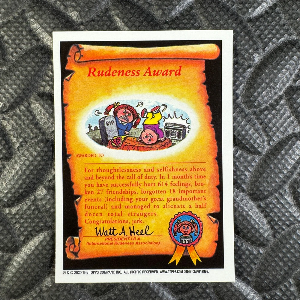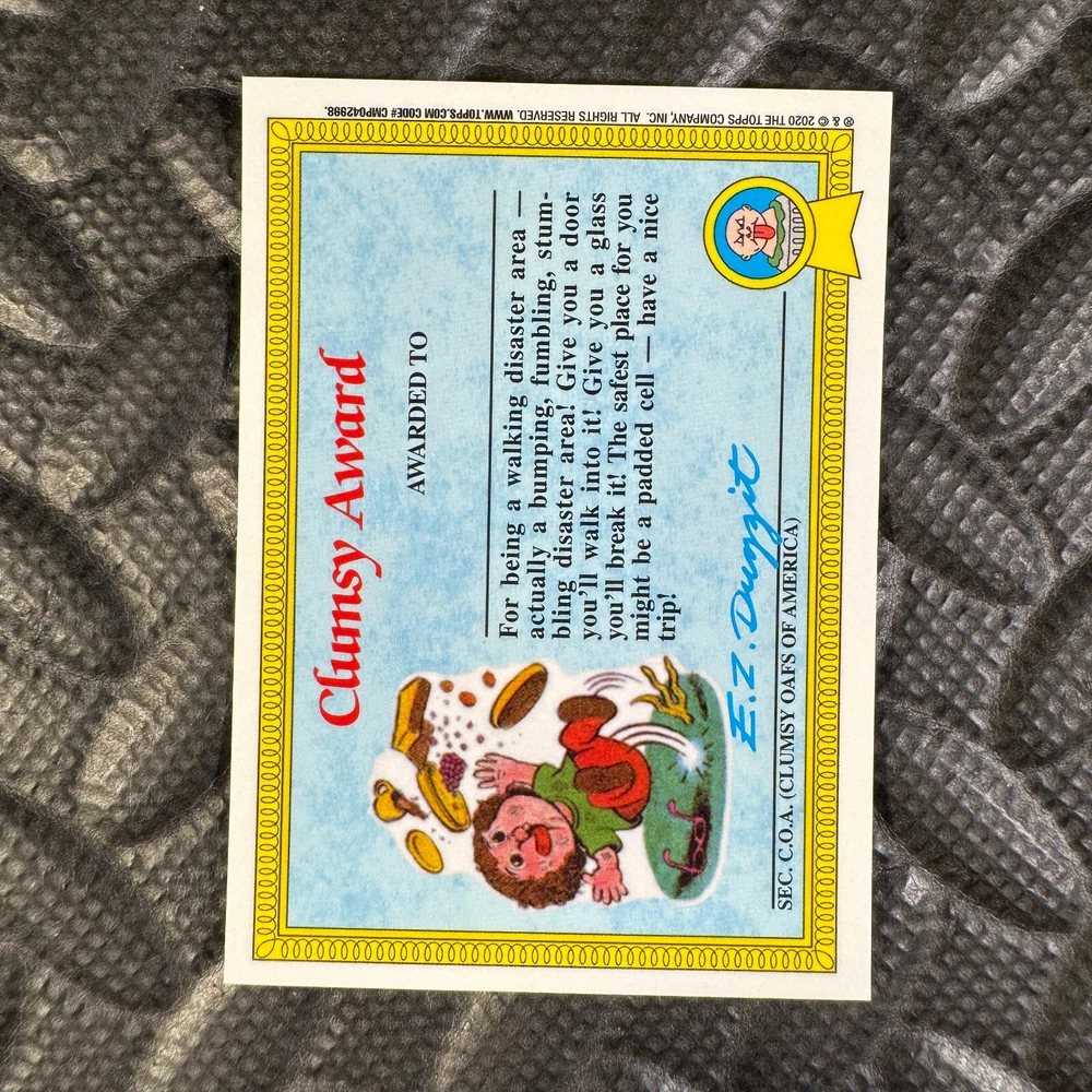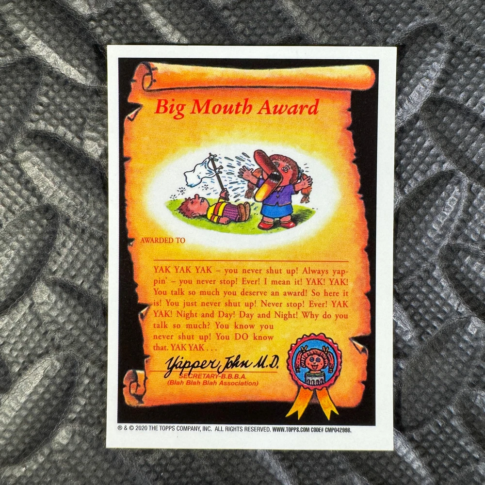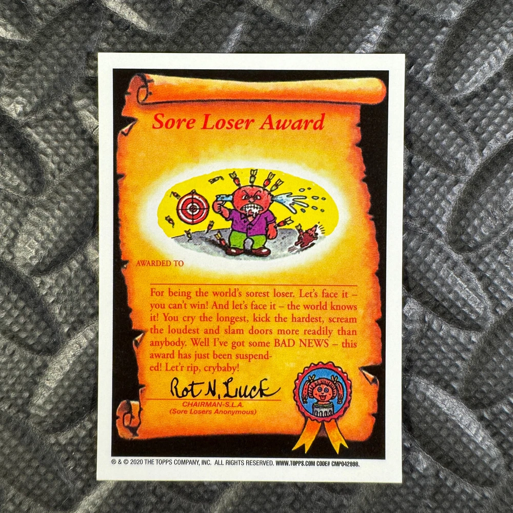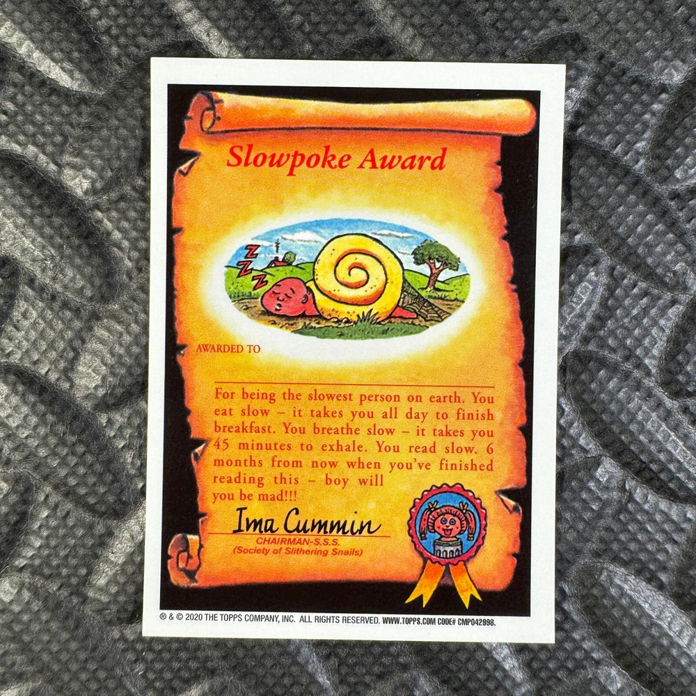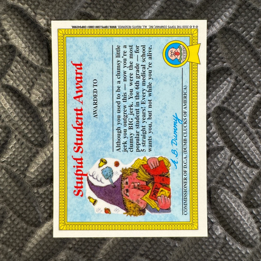 This listing is for your choice of any available 2020 Topps Garbage Pail Kids "Sapphire Edition Series 1" base card from the drop-down menu above. Photos show front and backside of each card, be sure to scroll sideways to view front and backside photos! The photos that you see, represent the card that you are buying, it is NOT particularly the card that you are buying! It would be a HUGE job to upload a new photo after every sale, so please look at these photos as "stock" photos. If you want a card with better centering, I can pick one, but I am not going to search out a dead-centered card for you. That being said, if you need a well-centered card, please put a note in when you check out. If it does not matter, then just check out and you will get the luck of the draw, as I normally pull singles at random. Any questions? Please ask before buying. International "USPS First Class Mail" will not include a tracking number for this item, if you would like a tracking number please choose the "eBay International Standard Shipping" option when you check out. As with all of my "pick-a-card" listings, I will be shipping with "eBay Standard Envelope". The rules of this envelope state that it cannot be too thick, so please expect your order to be packaged as follows: 1 to 6 cards will be slid into a single sleeve, the sleeve will then be slid inside of a semi-rigid Card-Saver. 7 to 12 cards will be slid into a double sleeve, 13 to 18 cards into a triple sleeve, 19 to 24 cards into a quadruple sleeve(up to six cards per sleeve). The double, triple and quadruple sleeve shipping will not have the Card-Saver. If you buy more than 1 card and want it packaged with more than 1 Card-Saver(or 1 sleeve per card), I kindly ask that you contact me before purchasing to be sure that this is possible to have it done with the stated shipping charge, or if additional shipping would be required. If you do not contact me, then you can expect to receive your order packaged as I have explained here. Please do not expect rigid top-loaders to be included, I don't normally keep a lot of them in stock, but if you message me prior to ordering I will be able to see if I have any that can be included with your order - additional shipping may be required. In order to get free combined shipping from this and any of my other "pick-a-card" listings, you must add all of your cards to the cart and check out when you are done shopping. If you do not use the cart you will be overpaying on shipping and I cannot refund you on over-payed shipping. So please use the cart and get your FREE COMBINED SHIPPING!