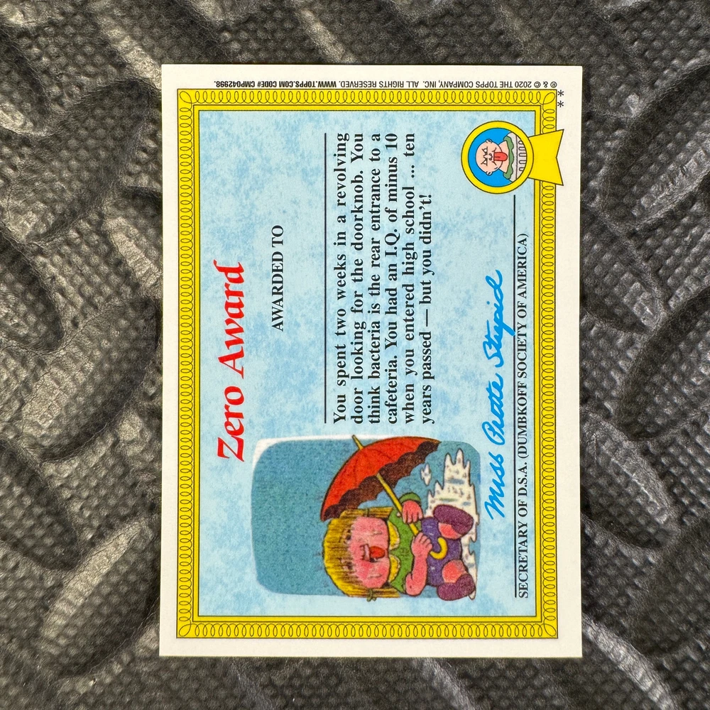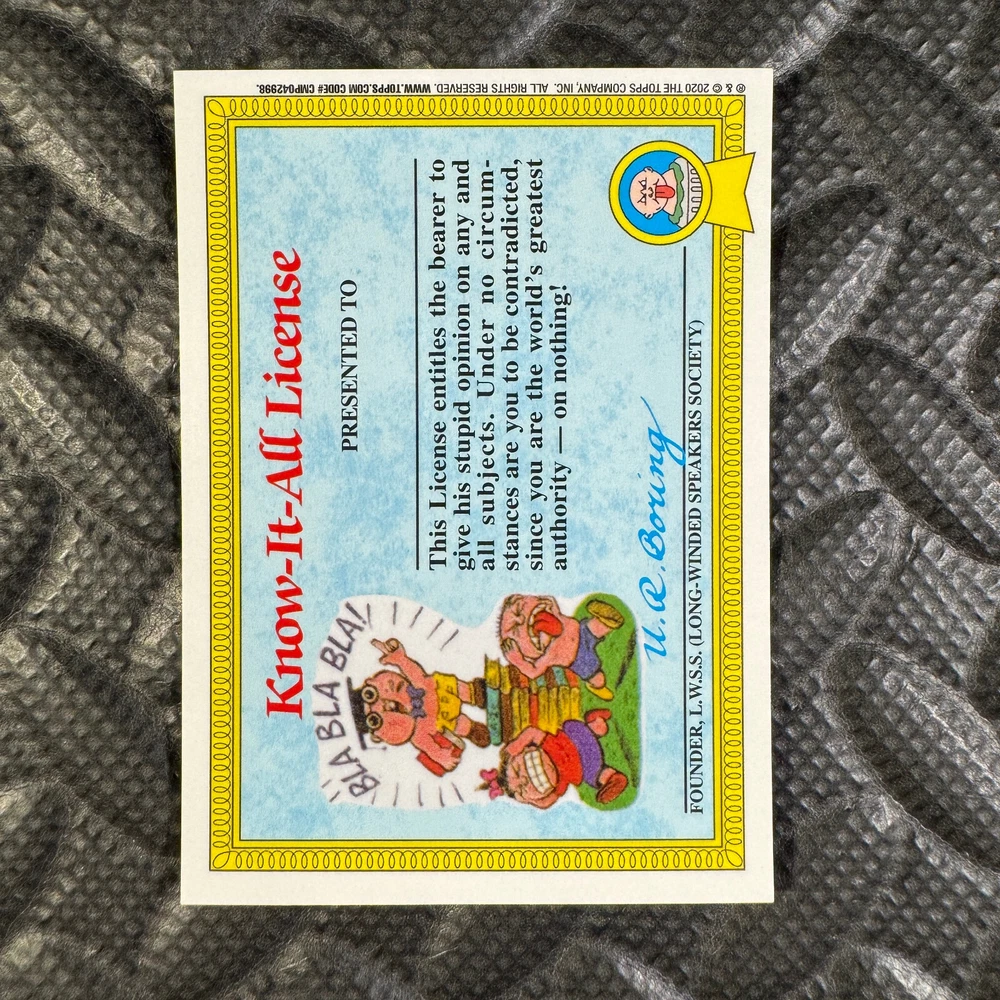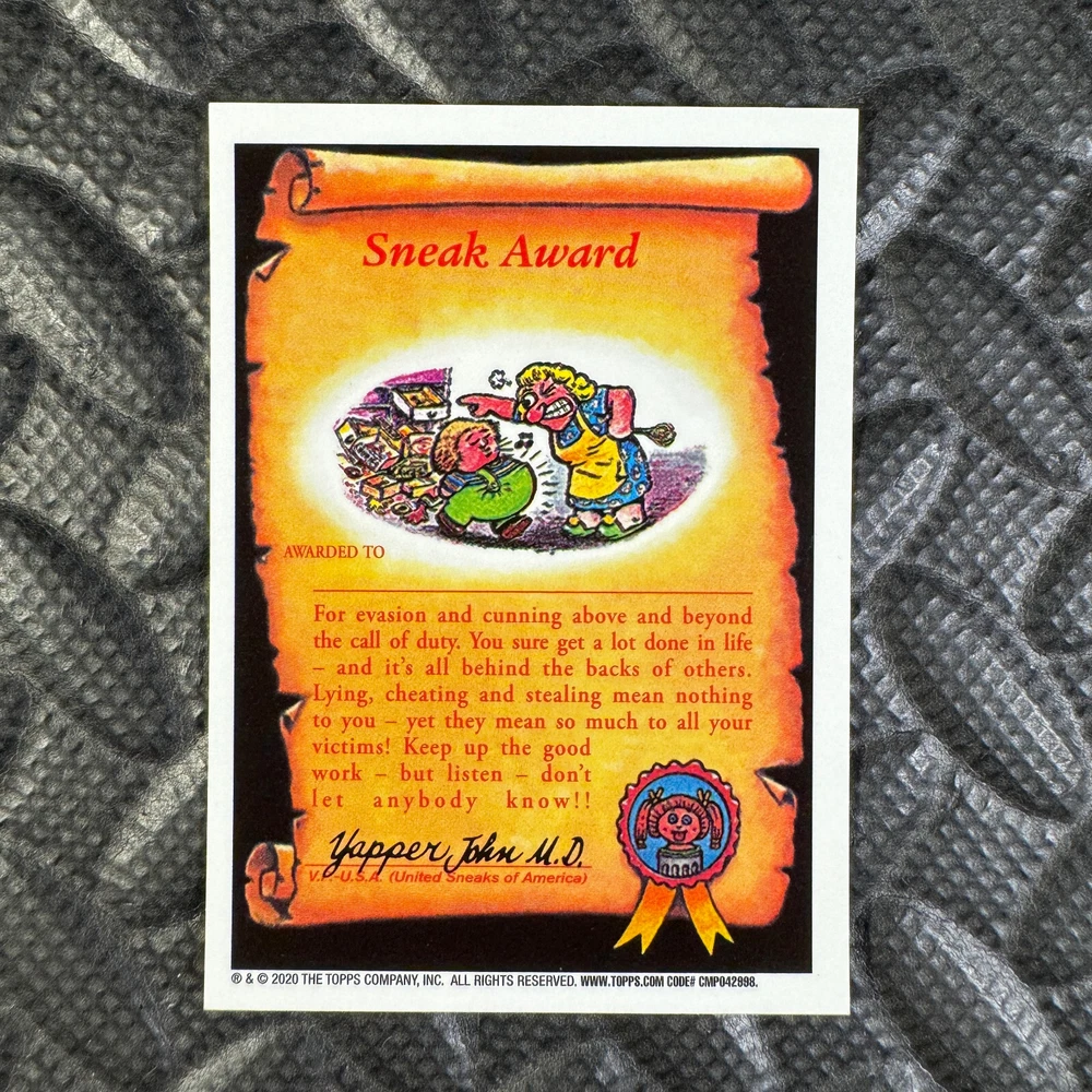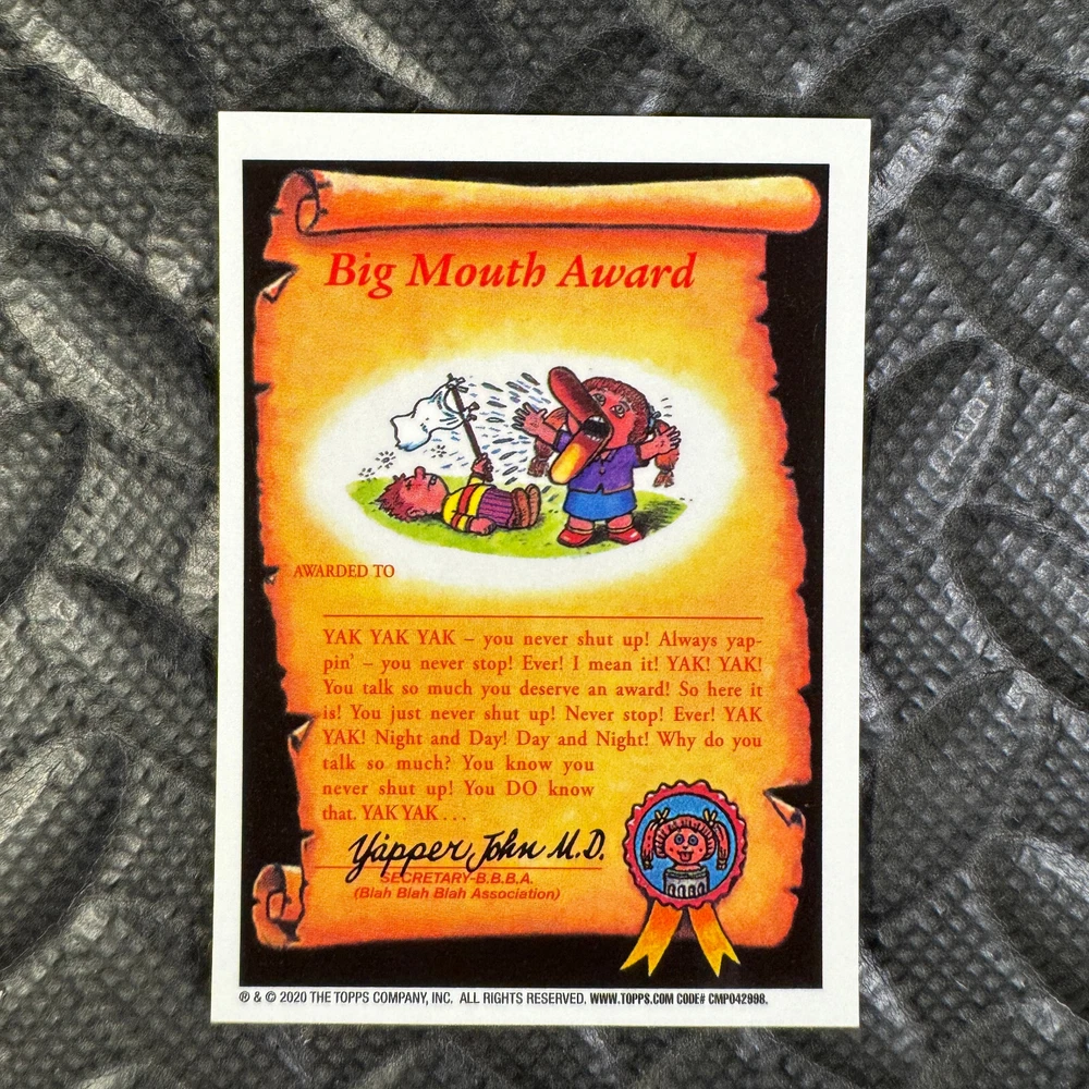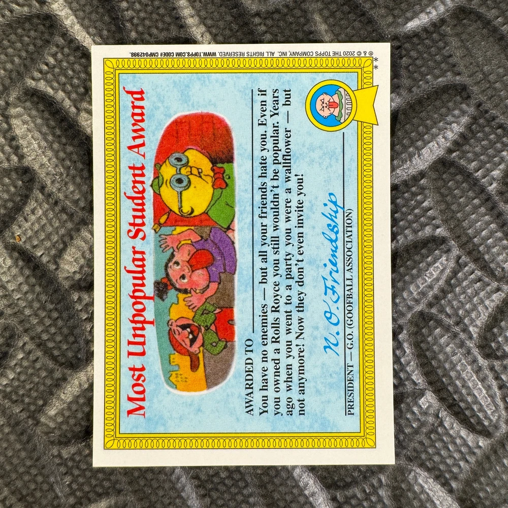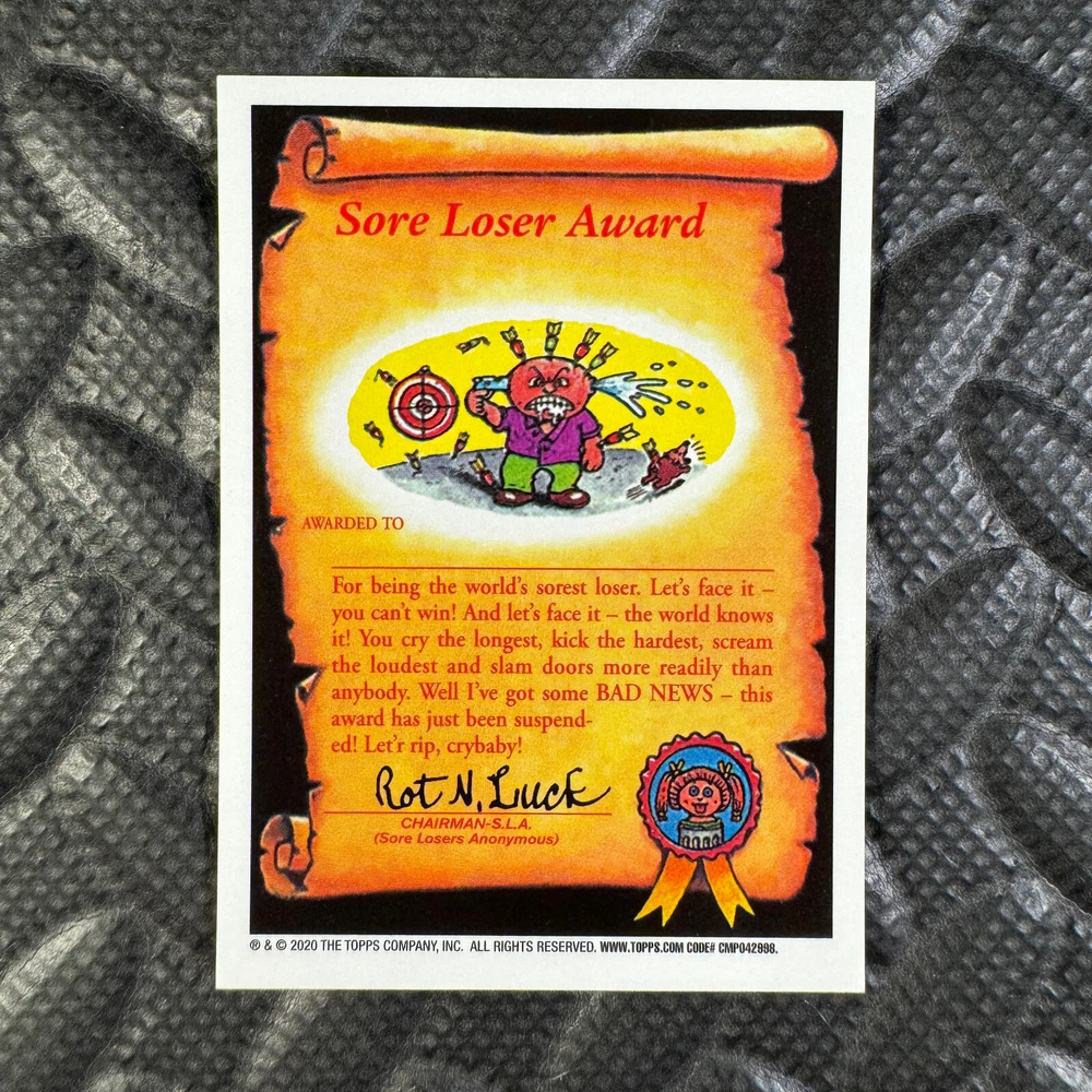 This listing is for your choice of any available 2020 Topps Garbage Pail Kids "Sapphire Edition Series 1" base card from the drop-down menu above. Photos show front and backside of each card, be sure to scroll sideways to view front and backside photos! The photos that you see, represent the card that you are buying, it is NOT particularly the card that you are buying! It would be a HUGE job to upload a new photo after every sale, so please look at these photos as "stock" photos. If you want a card with better centering, I can pick one, but I am not going to search out a dead-centered card for you. That being said, if you need a well-centered card, please put a note in when you check out. If it does not matter, then just check out and you will get the luck of the draw, as I normally pull singles at random. Any questions? Please ask before buying. International "USPS First Class Mail" will not include a tracking number for this item, if you would like a tracking number please choose the "eBay International Standard Shipping" option when you check out. As with all of my "pick-a-card" listings, I will be shipping with "eBay Standard Envelope". The rules of this envelope state that it cannot be too thick, so please expect your order to be packaged as follows: 1 to 6 cards will be slid into a single sleeve, the sleeve will then be slid inside of a semi-rigid Card-Saver. 7 to 12 cards will be slid into a double sleeve, 13 to 18 cards into a triple sleeve, 19 to 24 cards into a quadruple sleeve(up to six cards per sleeve). The double, triple and quadruple sleeve shipping will not have the Card-Saver. If you buy more than 1 card and want it packaged with more than 1 Card-Saver(or 1 sleeve per card), I kindly ask that you contact me before purchasing to be sure that this is possible to have it done with the stated shipping charge, or if additional shipping would be required. If you do not contact me, then you can expect to receive your order packaged as I have explained here. Please do not expect rigid top-loaders to be included, I don't normally keep a lot of them in stock, but if you message me prior to ordering I will be able to see if I have any that can be included with your order - additional shipping may be required. In order to get free combined shipping from this and any of my other "pick-a-card" listings, you must add all of your cards to the cart and check out when you are done shopping. If you do not use the cart you will be overpaying on shipping and I cannot refund you on over-payed shipping. So please use the cart and get your FREE COMBINED SHIPPING!