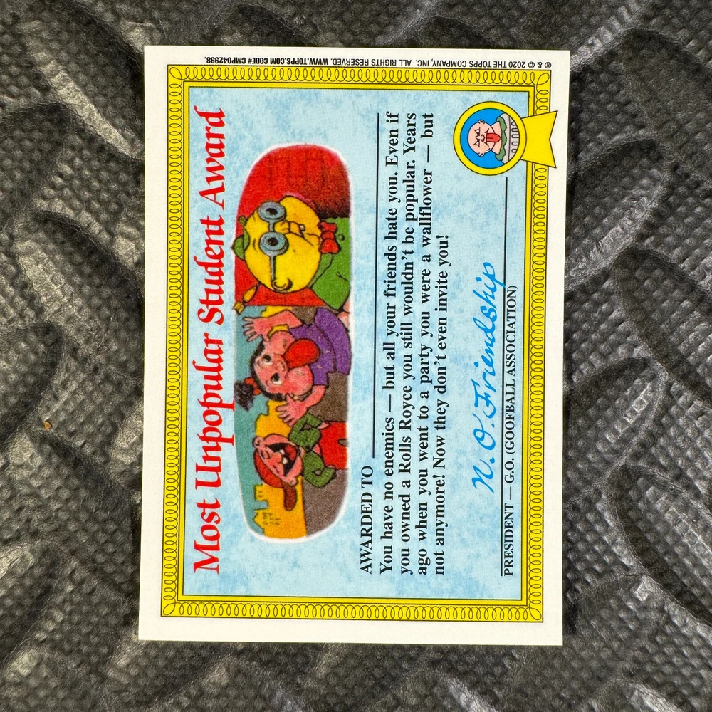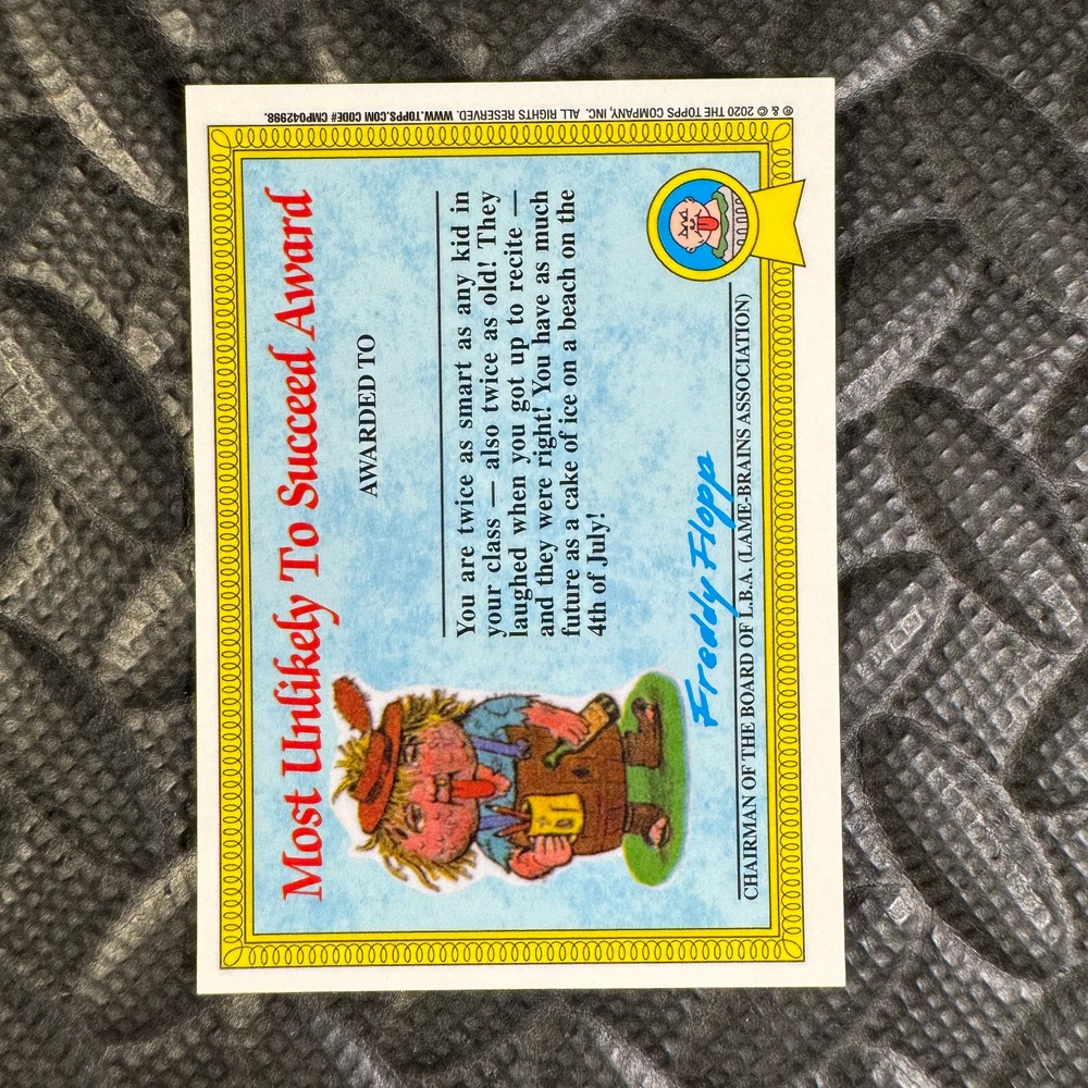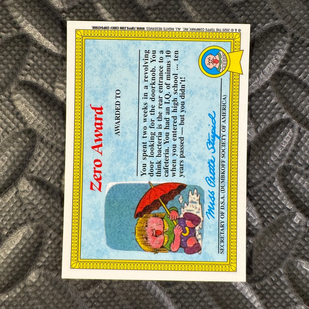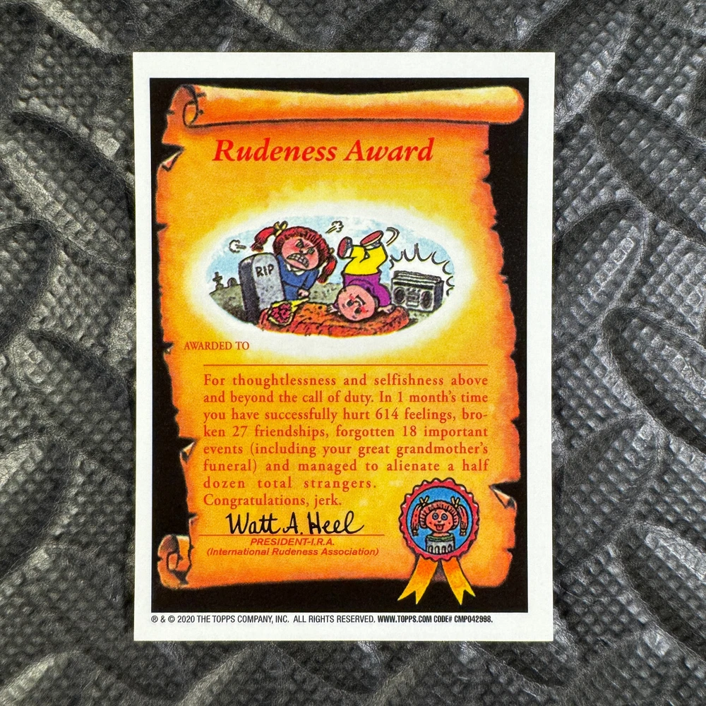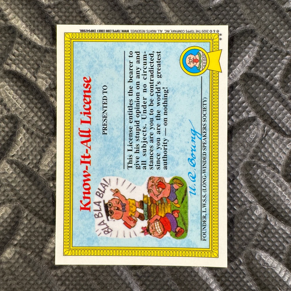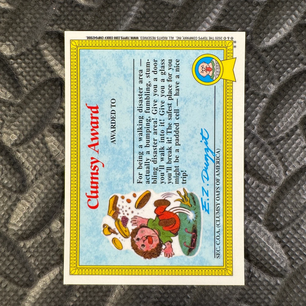 This listing is for your choice of any available 2020 Topps Garbage Pail Kids "Sapphire Edition Series 1" base card from the drop-down menu above. Photos show front and backside of each card, be sure to scroll sideways to view front and backside photos! The photos that you see, represent the card that you are buying, it is NOT particularly the card that you are buying! It would be a HUGE job to upload a new photo after every sale, so please look at these photos as "stock" photos. If you want a card with better centering, I can pick one, but I am not going to search out a dead-centered card for you. That being said, if you need a well-centered card, please put a note in when you check out. If it does not matter, then just check out and you will get the luck of the draw, as I normally pull singles at random. Any questions? Please ask before buying. International "USPS First Class Mail" will not include a tracking number for this item, if you would like a tracking number please choose the "eBay International Standard Shipping" option when you check out. As with all of my "pick-a-card" listings, I will be shipping with "eBay Standard Envelope". The rules of this envelope state that it cannot be too thick, so please expect your order to be packaged as follows: 1 to 6 cards will be slid into a single sleeve, the sleeve will then be slid inside of a semi-rigid Card-Saver. 7 to 12 cards will be slid into a double sleeve, 13 to 18 cards into a triple sleeve, 19 to 24 cards into a quadruple sleeve(up to six cards per sleeve). The double, triple and quadruple sleeve shipping will not have the Card-Saver. If you buy more than 1 card and want it packaged with more than 1 Card-Saver(or 1 sleeve per card), I kindly ask that you contact me before purchasing to be sure that this is possible to have it done with the stated shipping charge, or if additional shipping would be required. If you do not contact me, then you can expect to receive your order packaged as I have explained here. Please do not expect rigid top-loaders to be included, I don't normally keep a lot of them in stock, but if you message me prior to ordering I will be able to see if I have any that can be included with your order - additional shipping may be required. In order to get free combined shipping from this and any of my other "pick-a-card" listings, you must add all of your cards to the cart and check out when you are done shopping. If you do not use the cart you will be overpaying on shipping and I cannot refund you on over-payed shipping. So please use the cart and get your FREE COMBINED SHIPPING!